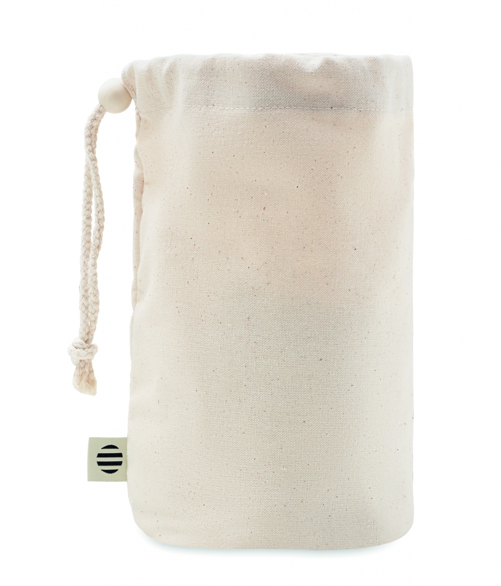 Small accessories or storage bag in organic cotton. 220 gr/m². It has inner mesh compartments and has a wooden closing buckle.