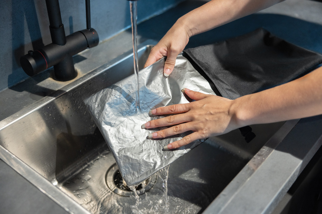 Snackstrap AWARE™ RPET foldable lunchbag is made from recycled PET bottles and offers a smart, sustainable alternative to single-use bags. With its adjustable size and airtight closure, it keeps your lunch fresh and delicious throughout the day. Easy to clean and compact when folded, it’s perfect for on the go. A simple, conscious choice that makes a real difference. Ideal for bread, vegetables and fruit. Freezer proof. Made with recycled polyester embedded with the AWARE™ tracer. 2% of proceeds of each product sold with AWARE™ will be donated to Water.org. PVC free.