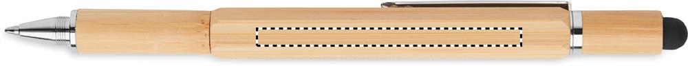 Twist action spirit level pen in bamboo with 7 cm ruler, stylus and Phillips head and flat head screw driver bits. Blue ink. Bamboo is a natural product, there may be slight variations in colour and size per item, which can affect the final decoration outcome.