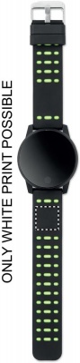 4.0 wireless Low-Energy sports smart watch with silicone strap. Rechargeable Li-Pol 180 mAh battery. IPX7 waterproof. Requires a free app (wearfit available in both iOS and Android.