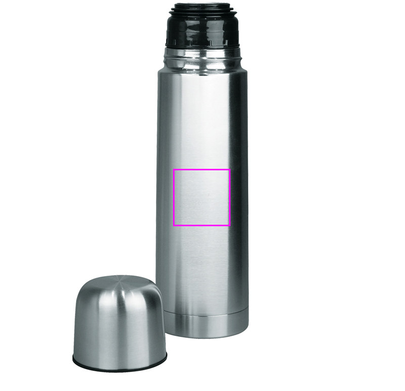 Double wall stainless steel isolating flask with 0,5l content. The snap closure allows fast pouring into the cup. Your logo will be laser engraved on the flask. Each isolating flask is packed in a single cardboard box.