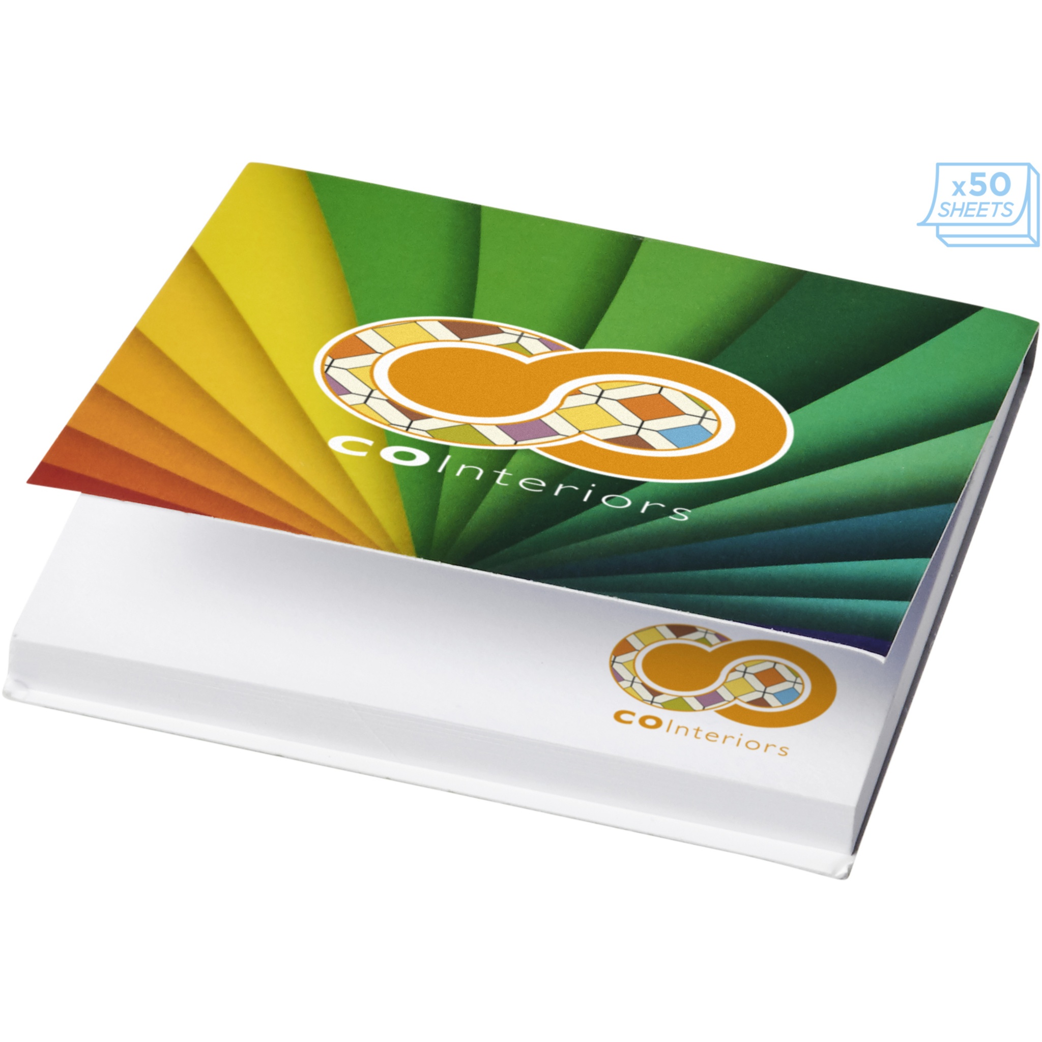 Sticky-Mate® sticky notes with a convenient soft cover made of paper. Includes blank paper sheets of 80g/m2. Full colour decoration possible on each sheet. The soft cover does not only prevent damages to the content, but also offers additional advertising space. Sheet dimension: 75x75mm. Three sizes available: 25 sheets (21098001), 50 sheets (21098002), 100 sheets (21098004).