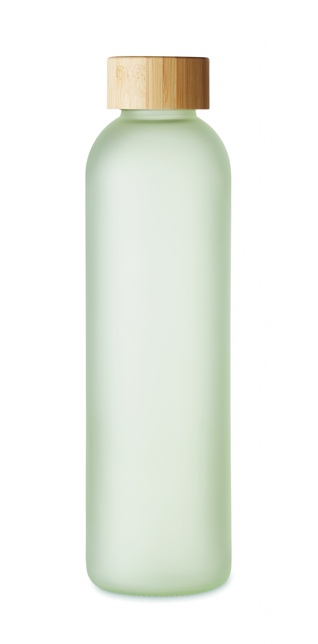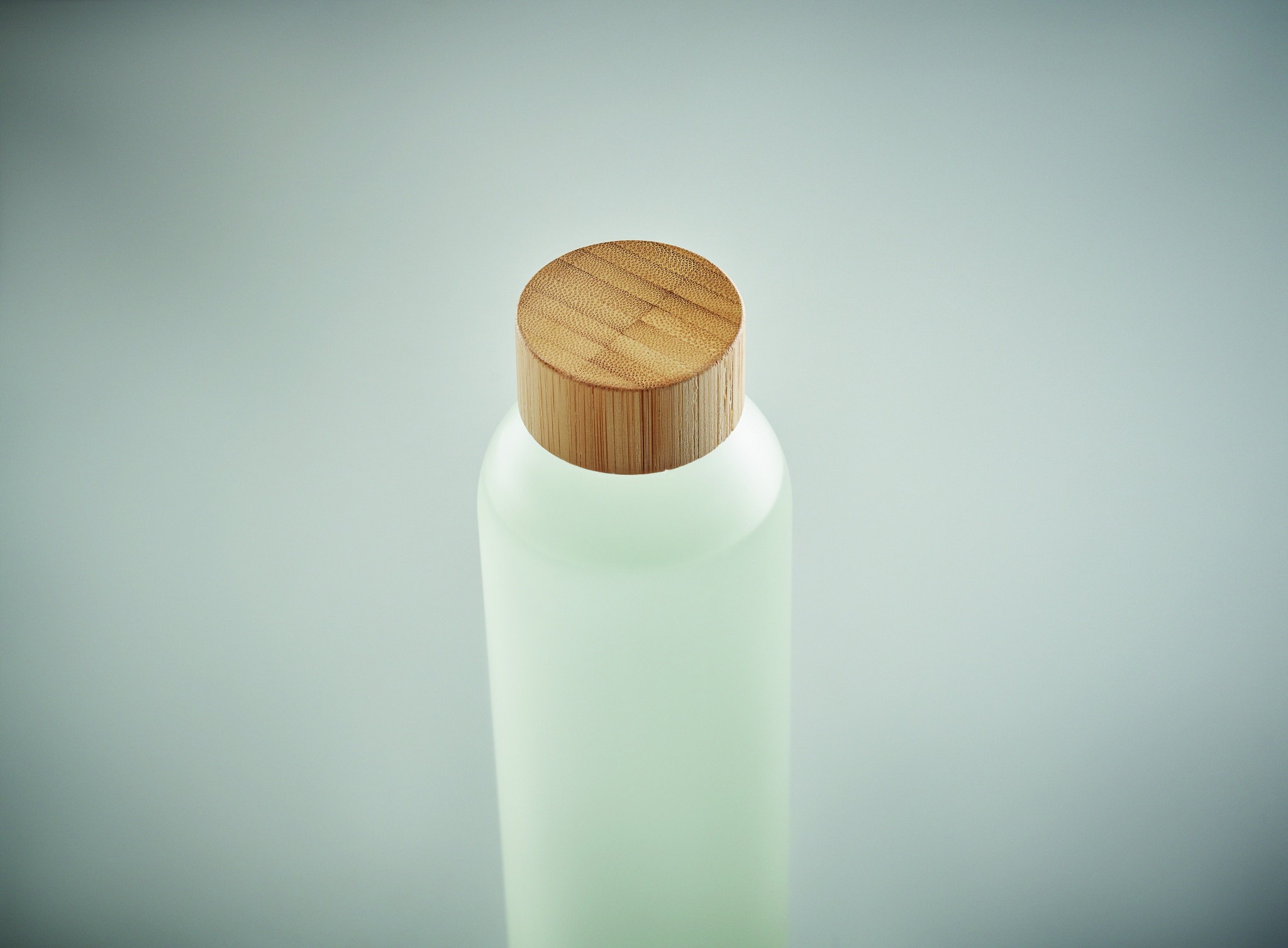 Glass bottle with special coating for sublimation and bamboo lid. Capacity: 650 ml. Bamboo is a natural product, there may be slight variations in colour and size per item, which can affect the final decoration outcome.