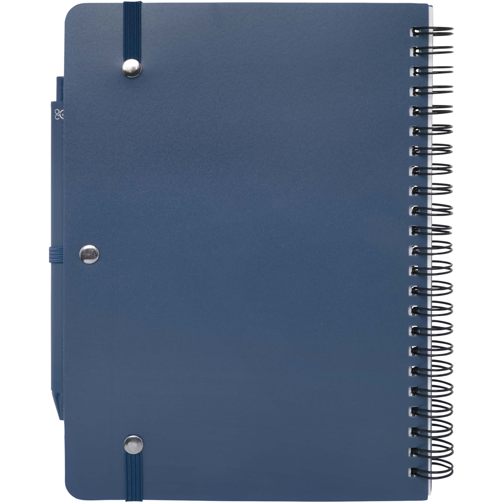 The Thalaasa A5 hard cover notebook is made of ocean bound recycled plastic with 80 lined sheets of 70 g/m² cream coloured paper. The notebook has rounded corners, an elastic closure, and a pen loop. The ballpoint pen with black ink is also made of ocean bound recycled plastic. Writing length: 1000 metres. Nib size: 1.0 mm.