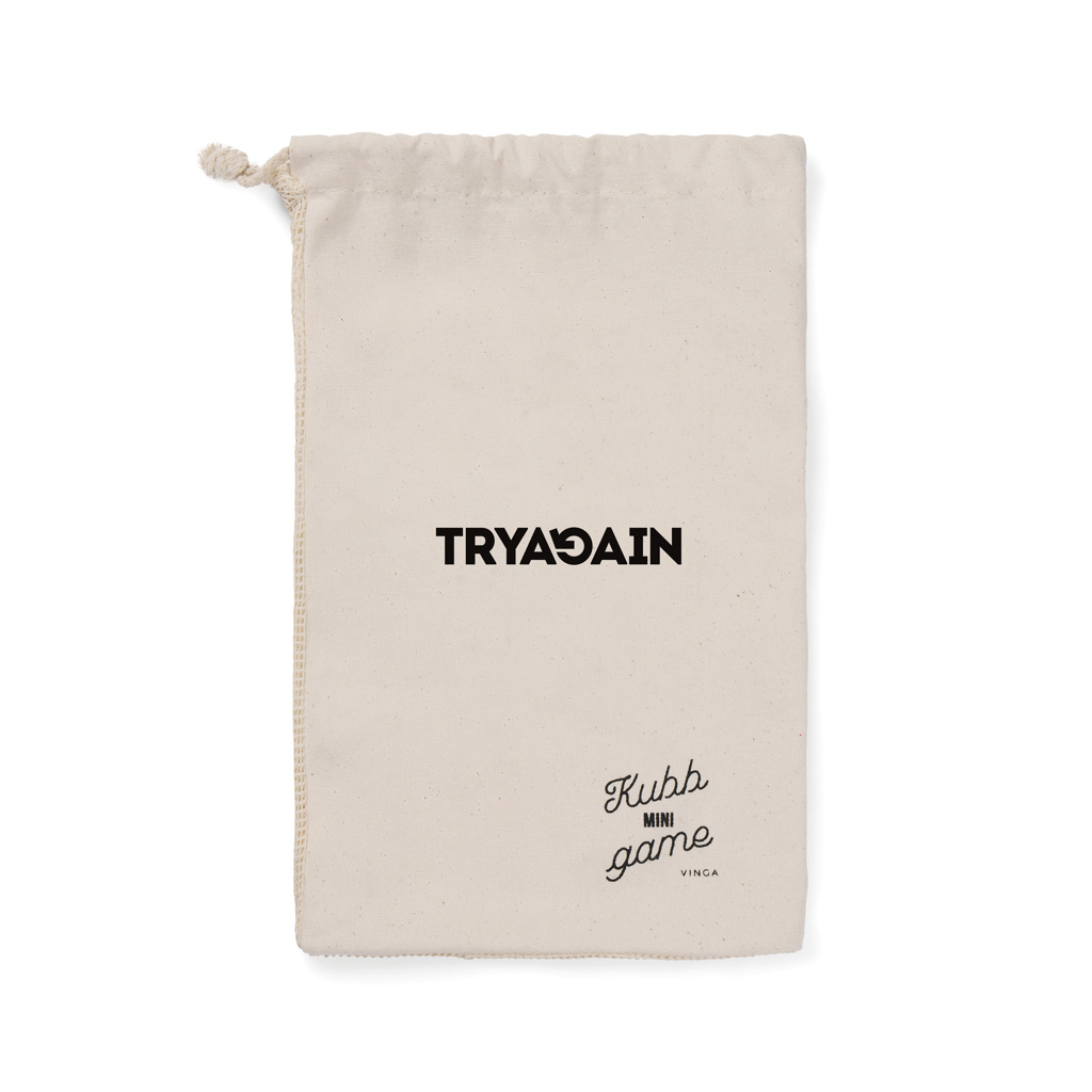 The kubb mini game is a fun and engaging game making it the perfect leisure activity for friends and family. This handy mini version of the classic Swedish game Kubb is ideal to bring along and play wherever it suits you. The set includes one king, ten kubbs and six throwing pins in FSC® certified pine wood. The goal of the game is to knock down the opponent's five kubbs and then topple the king to win the game. The game is conveniently packed in a canvas bag with a mesh back making it easy to carry along. Instruction leaflet is included.