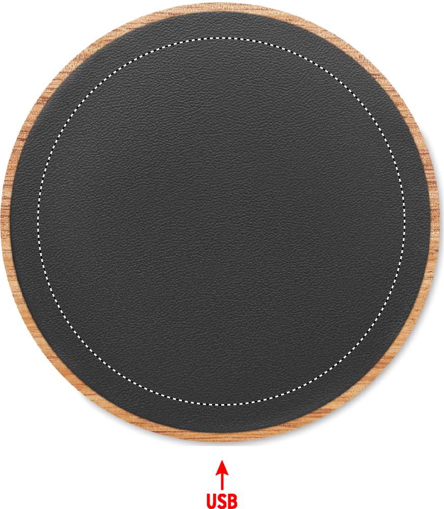 Wireless charger in acacia wood and recycled PU, which is 58% recycled (40% recycled polyester and 18% recycled PU). Output: DC 9V/1.67A (15W). Compatible with all QI enabled devices such as latest Androids, iPhone® 8, X and newer.