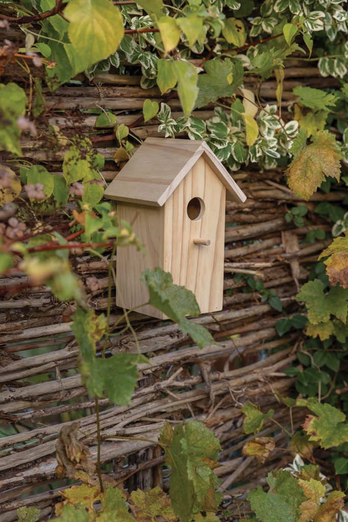 Help birds find a suitable nest and hiding place by hanging a nest box. With an entry opening of 33mm, this birdhouse is ideal for house sparrows, however tits, pied flycatchers and nuthatches can also take up residence in this birdhouse. The birdhouse is made of FSC® certified pine wood. On the side there is an opening through which the birdhouse can be easily cleaned. At the back is a pre-drilled hole so that you can easily hang the birdhouse. Comes in kraft gift box.