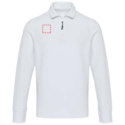 The Zeus unisex long sleeve with half zip is made from 245 g/m² piqué knit in 100% cotton for year-round wear. It features refined pick-stitch detailing, with self-fabric neck tape for added durability and side slits with self-fabric inserts for enhanced mobility. A heat transfer main label ensures label-free comfort. Equipped with AWARE™ traceability technology, this garment includes a digital product passport for verified transparency and sustainability.