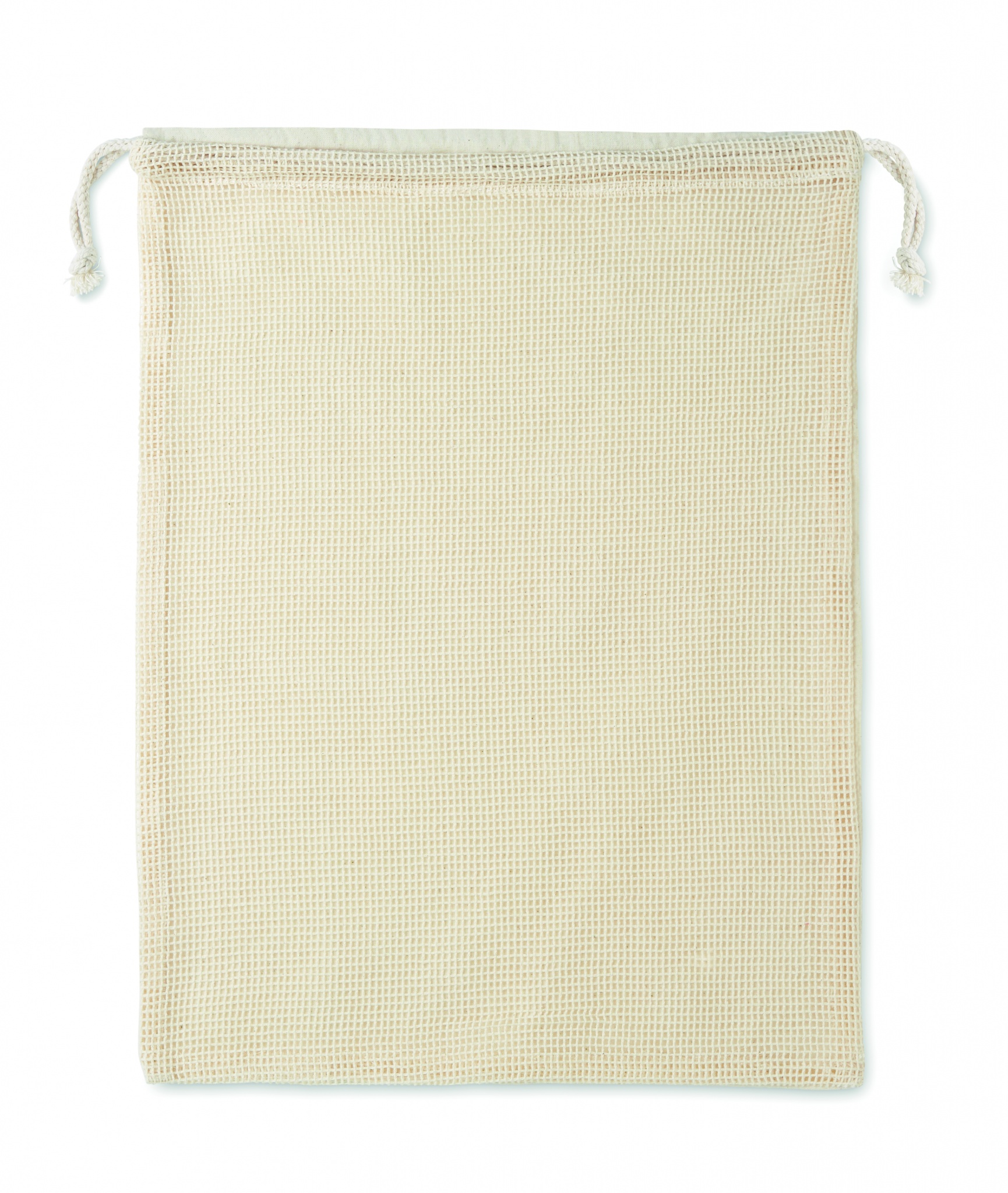 Korduvkasutatav toidukott. Üks pool on puuvillast (140gr/m²) ja teine võrkpuuvillast (110gr/m²). Pingutusnööriga sulgemine.