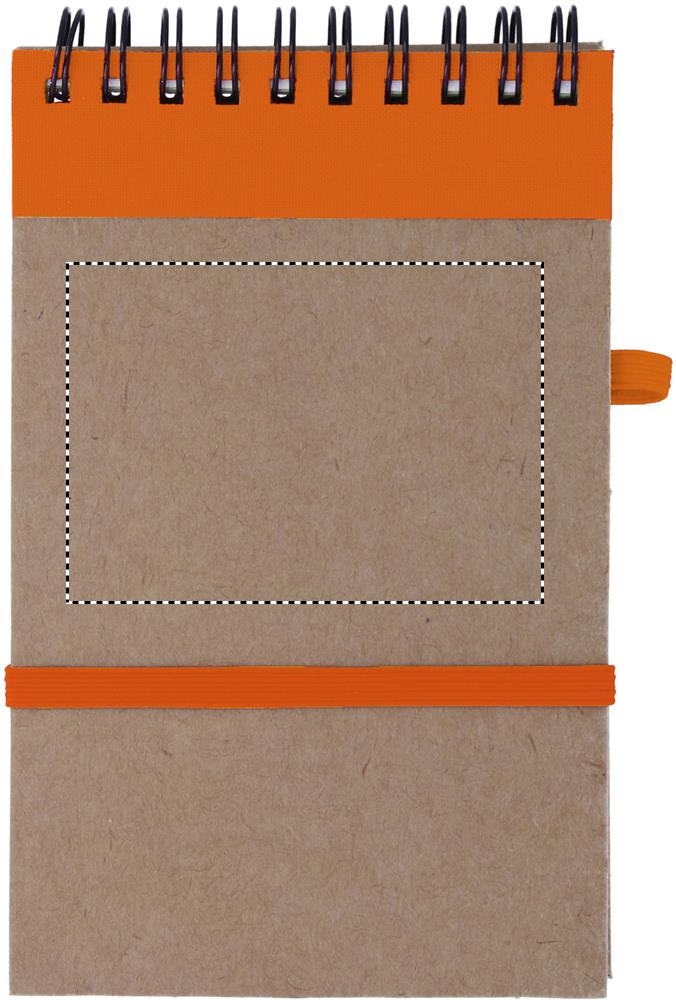 Taaskasutatud paberist märkmik koos sobiva pliiatsiga. Kahejuhtmeline. 140 tavalist taaskasutatud paberilehte (70 lehte). Sobiv nupuga pastapliiats taaskasutatud karbis ja biolagunevas plastis. Sinine tint. Elastne sulgemisrihm ja pliiatsihoidja.