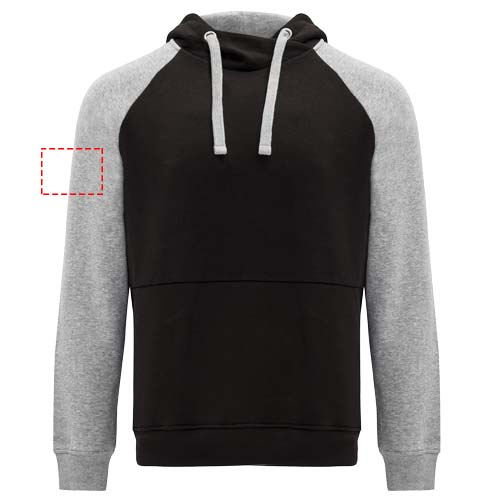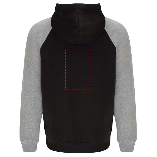 Kahevärviline unisex kapuuts. Ristkaeluse ja metallaasadega kapuuts. Kontrastne sisemine kapuuts, nöör ja raglaanvarrukad. Känguru tasku. Kätised ja alläär 1x1 elastaanist soonikust. Eemaldatav etikett.