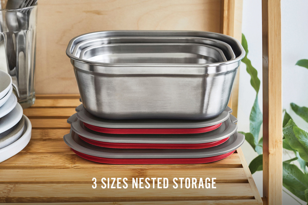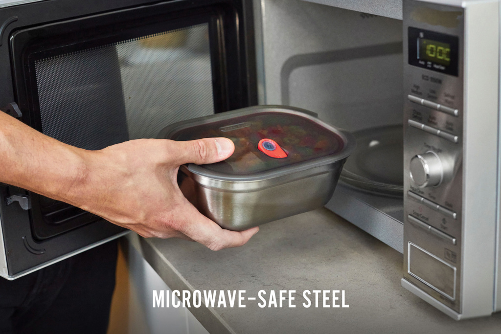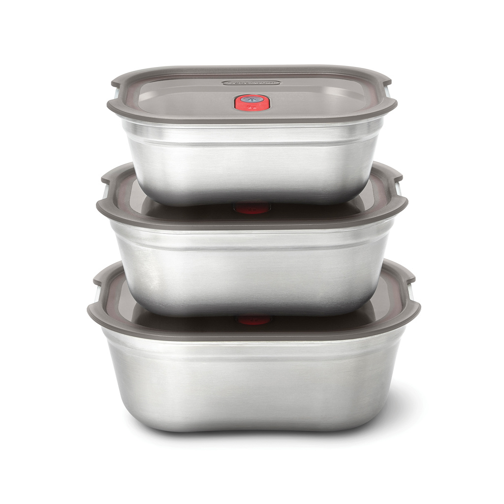 See kolmest mikrolaineahjus kasutatavast roostevabast terasest toidukarbist koosnev komplekt on loodud igapäevaseks kasutamiseks – kerged, vastupidavad ja õhukindlad. Igal karbil on uuenduslik mikrolaineahjukindel teraskonstruktsioon ja vaakumtihendusega lekkekindel kaas, mis hoiab toidu kauem värskena. Poolläbipaistev kaas võimaldab näha karbi sisu. Kvaliteetne roostevabast terasest põhi on nõudepesumasinas, sügavkülmas ja ahjus ohutu (kaas ei ole ahjukindel). Eemaldatavad tihendid muudavad puhastamise lihtsaks. Ainulaadne kaanelukustusava võimaldab teil toitu mikrolaineahjus kuumutada ilma kaant eemaldamata, vähendades kuumenemisaega ja hoides ära pritsimise. Need BPA-vabad anumad on loodud kompaktseks hoiustamiseks.