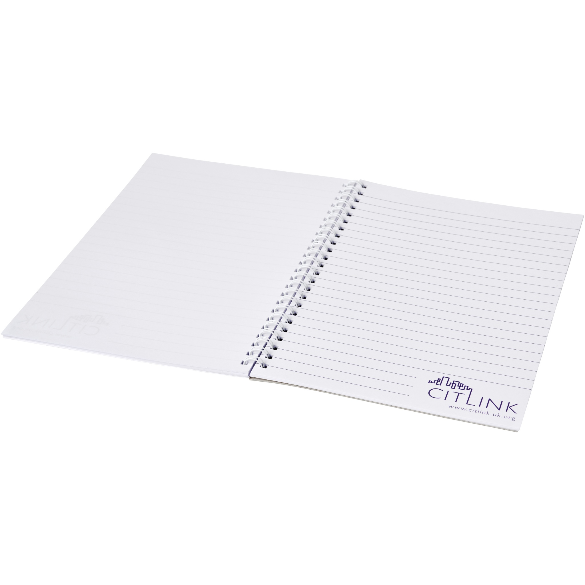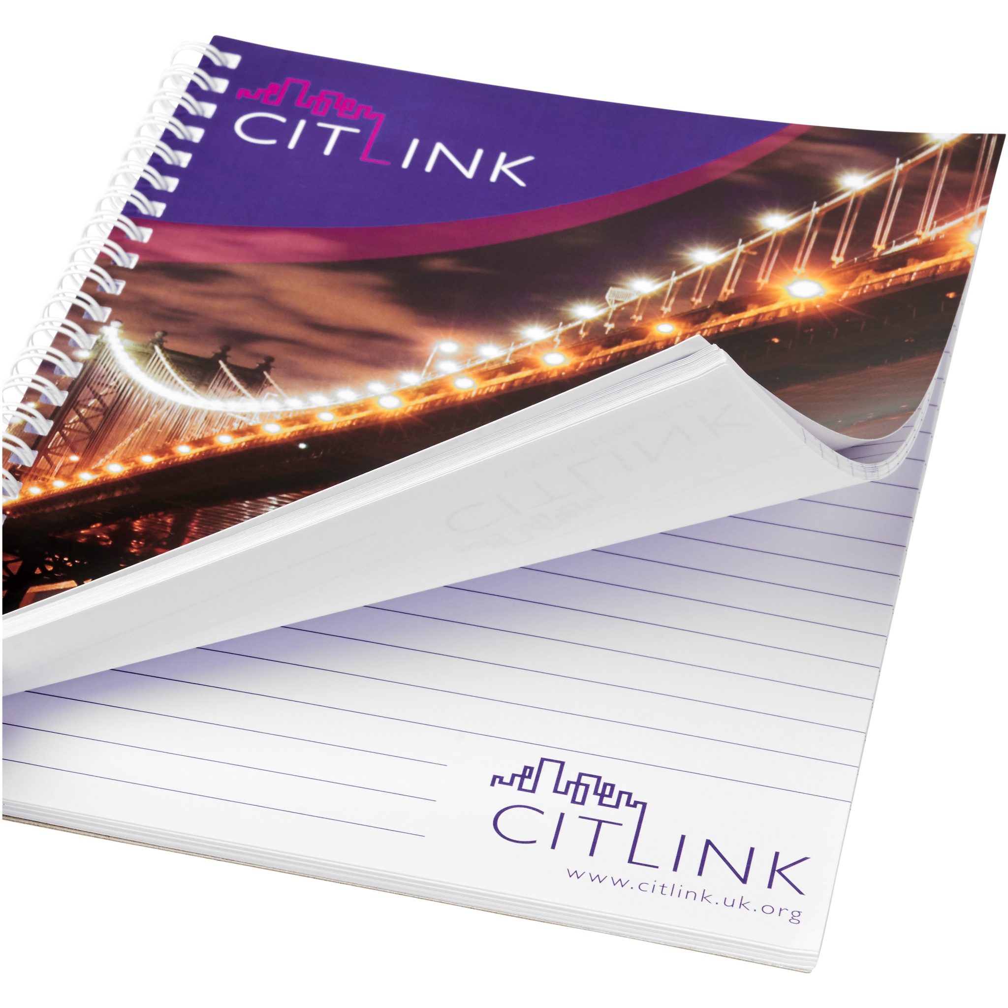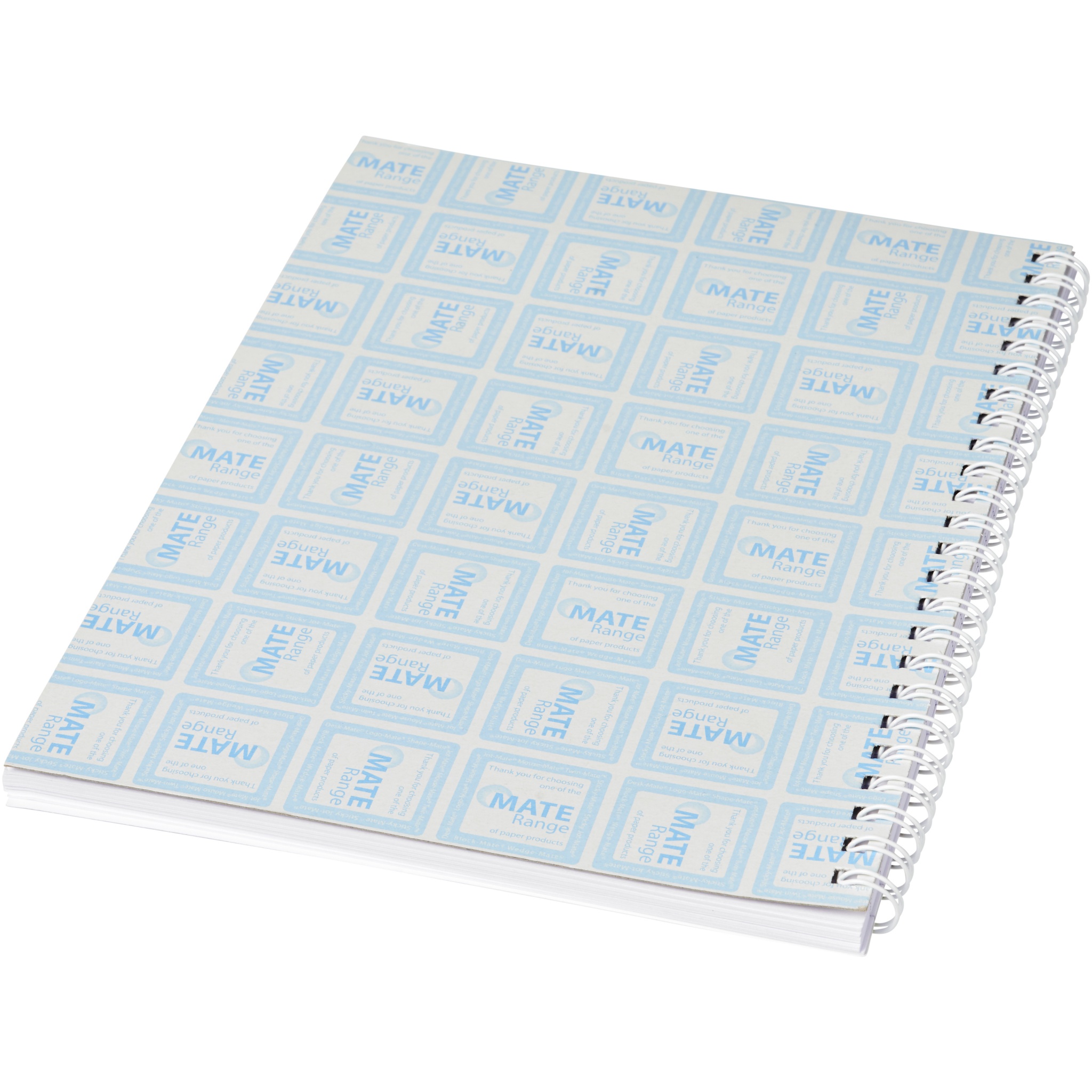 Desk-Mate® A4 märkmik spiraalköitega. Märkmikul on läikiv kartongist esikaas (250 g/m2), valged leheküljed (80 g/m2). Standardköide on 50 lehega, saadaval ka 80 lehega. Saate kohandada selle mitmekülgse märkmiku lehti mis tahes kujundusega – nii et olenemata sellest, kas soovite joonelist paberit, ruute või punkte – kõik on võimalik!