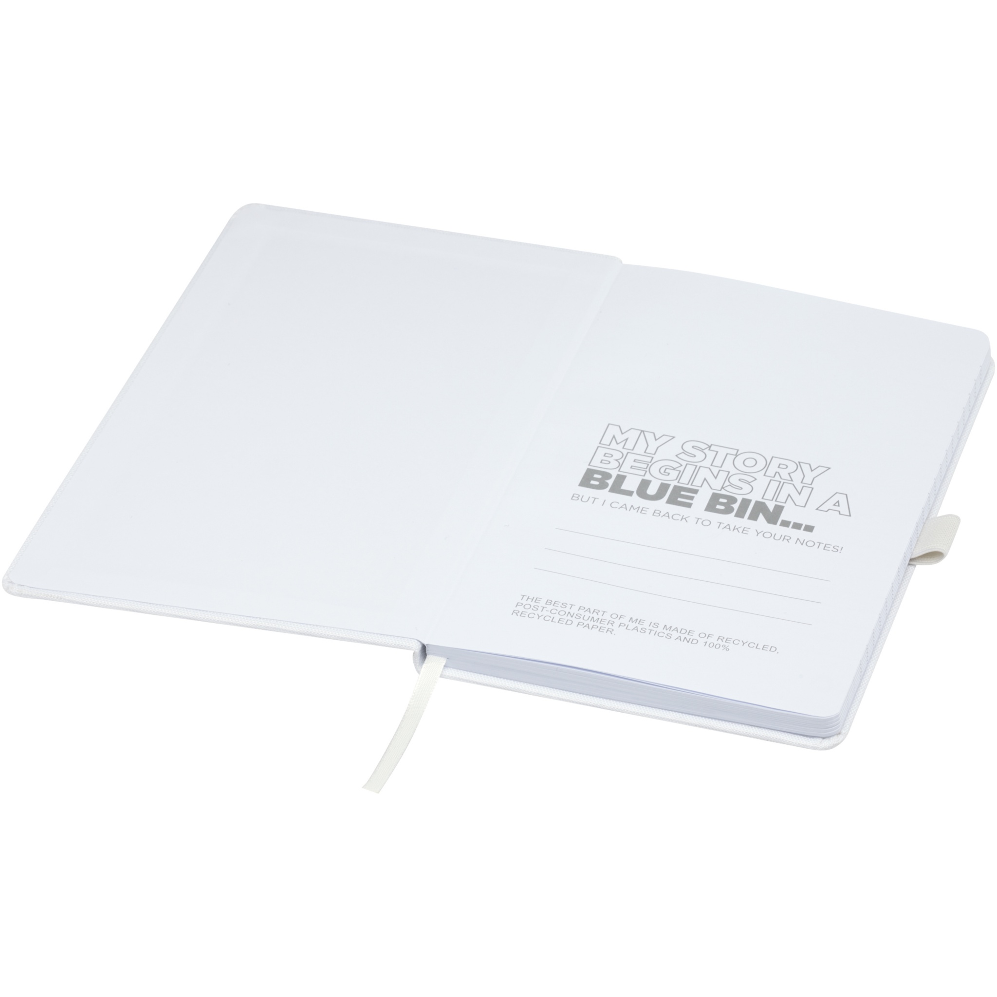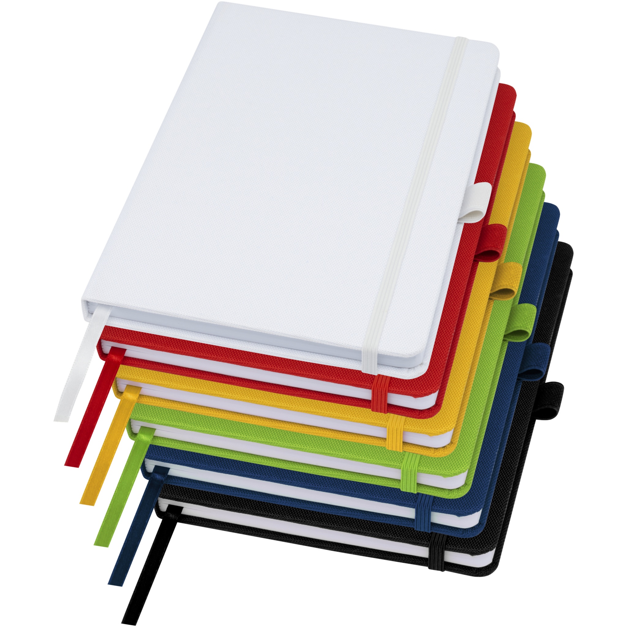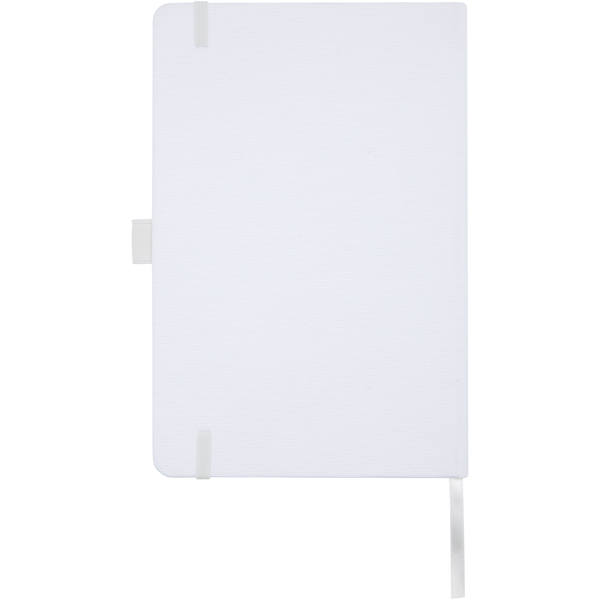 RPET kangast kaanega A5 märkmik. Sisaldab 80 lehte 70 g/m2 vooderdatud küljenduse, pliiatsisilmuse ja lindimarkeriga taaskasutatud paberit. Saab kombineerida 107757 Honua RPET pastapliiatsiga.