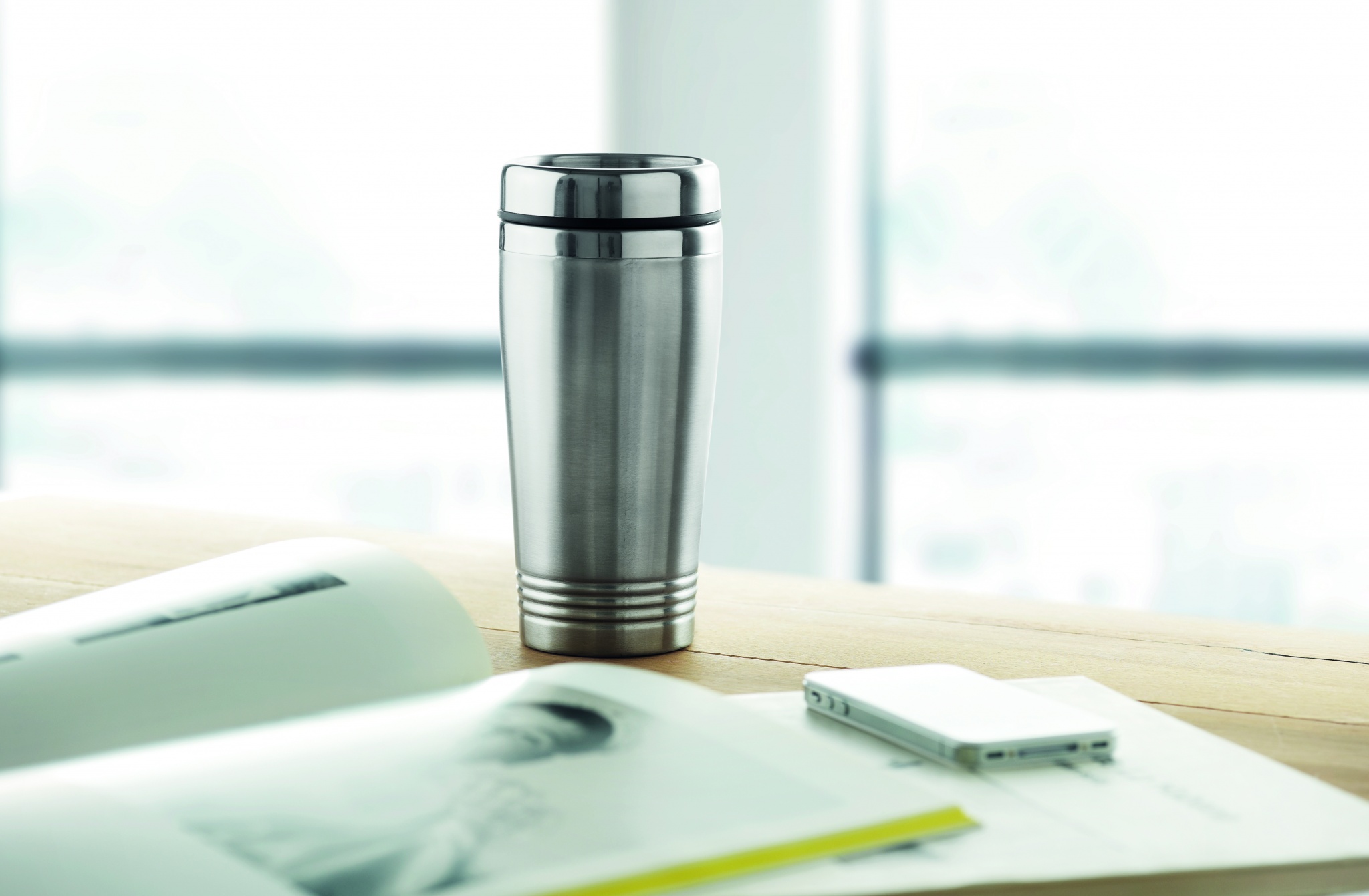 Kahe seinaga roostevabast terasest reisitass musta PP kaanega. Mahutavus: 400 ml.