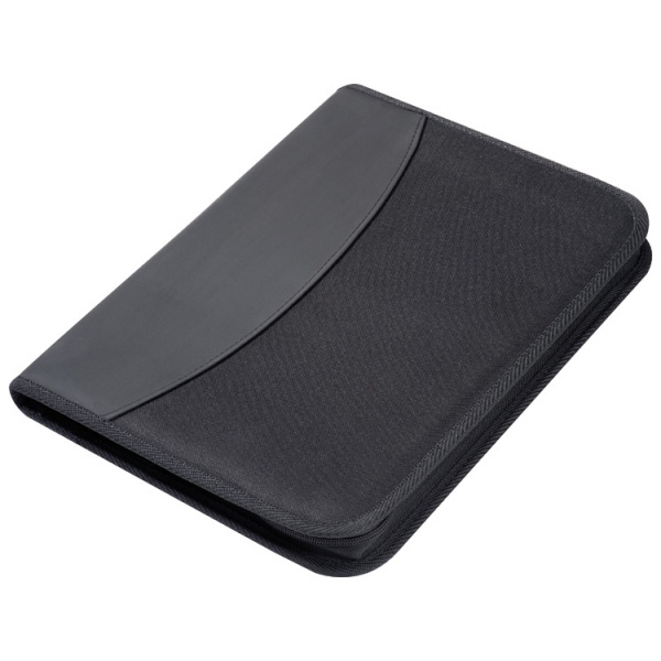 Portfolio on valmistatud vastupidavast 600D polüestrist; erinevate lahtrite, 270° tõmbluku ja neutraalse kirjutusplokiga (40 lk.) Trükime teie logo pehmele nahast serfale.
