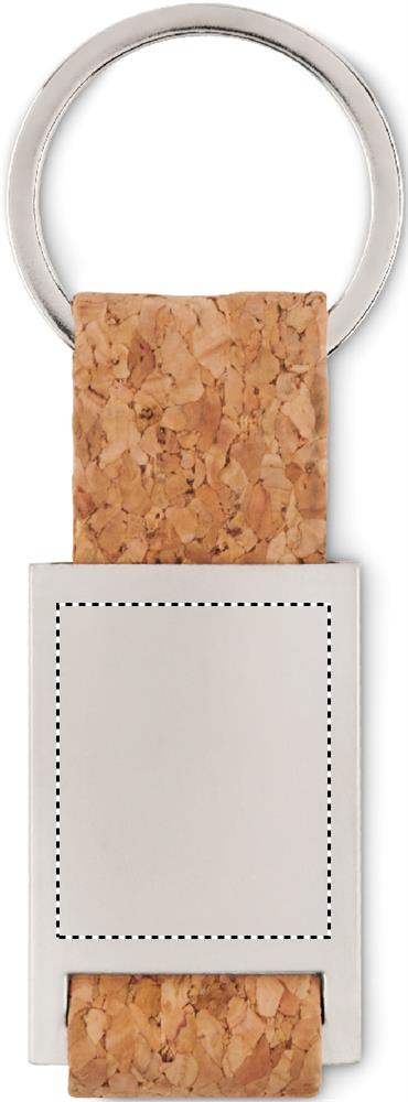 Metallist ristkülikukujuline korgirihmaga võtmehoidja.