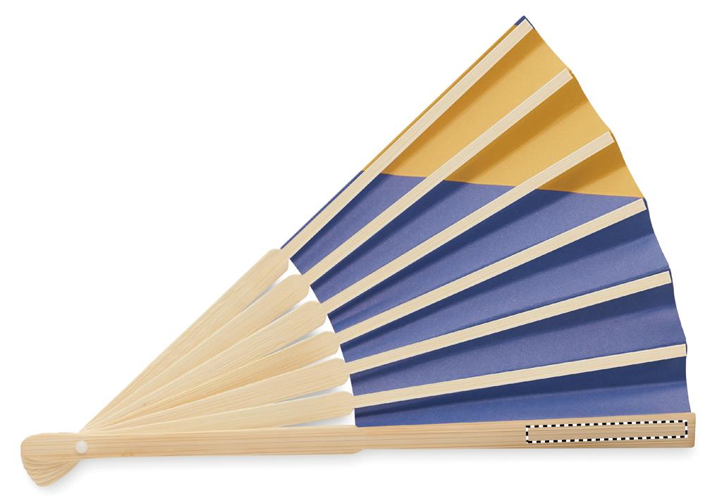 Manuaalne bambusest käsiventilaator lipukujundusega paberkangal.