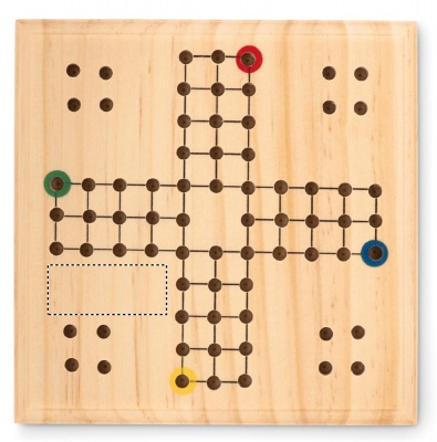 Puidust Ludo mäng. Esitatakse puuvillases kotis.