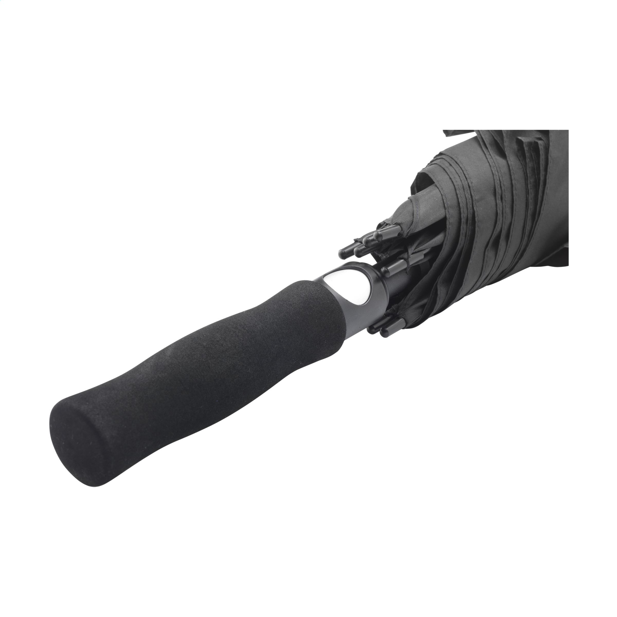 Vau! Kahes värvitoonis varikatusega vihmavari, valmistatud 190T RPET polüestrist. Sellel silmatorkaval vihmavarjul on eriti suur ekraani läbimõõt, vähemalt 120 cm. Automaatse teleskoopvedrustusega (automaatselt avanev), klaaskiust raami ja käepidemega, EVA pehme vahtmaterjalist käepideme katte ja takjakinnitusega. See vihmavari on osaliselt valmistatud taaskasutatud PET-pudelitest.