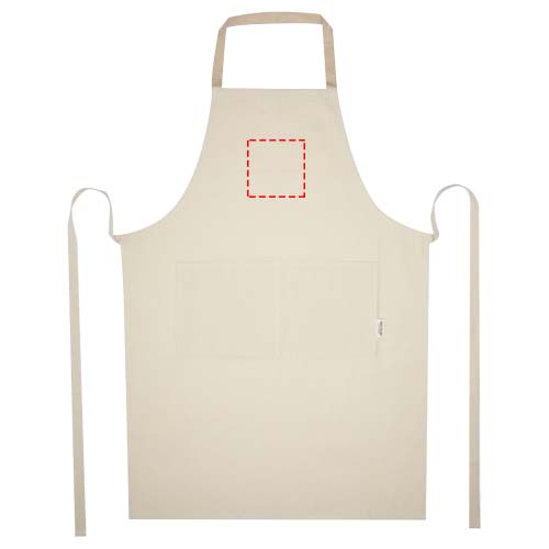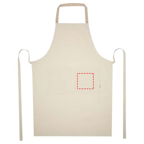Nia põll on valmistatud 100% GRS sertifikaadiga 200 g/m² taaskasutatud puuvillast. Naturaalse puuvillase värvi ja kontrastse kaelasilmusega põll kaitseb teie riideid toiduvalmistamise ajal. Nia põllel on kaks kõrvuti asetsevat taskut, mille kombineeritud suurus on 45 x 20 cm, ja 1 meetri pikkune lipsukinnis, mis tagab teie köögis nii praktilisuse kui ka stiilsuse.