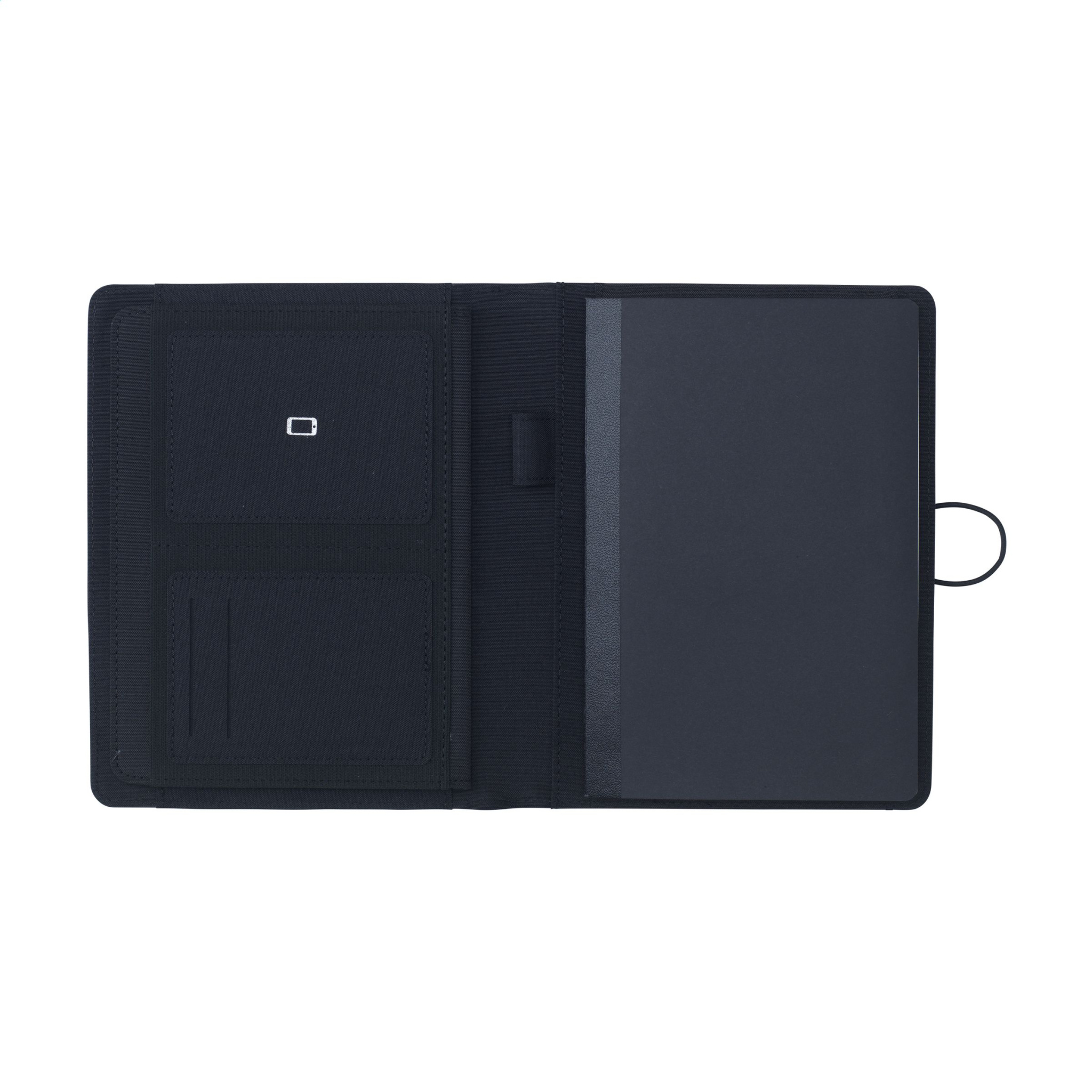 Vau! Moodne RPET materjalist A5 konverentsi/dokumentide mapp. Varustatud erinevate sisetaskutega, sealhulgas eraldi sahtel mobiiltelefoni hoiustamiseks, kaks sahtlit kaartide jaoks ja aas pastaka kinnitamiseks. Kaasas märkmik u. 64 lehte FSC®-sertifikaadiga kreemika värvi joonega paberit (70 g/m²).