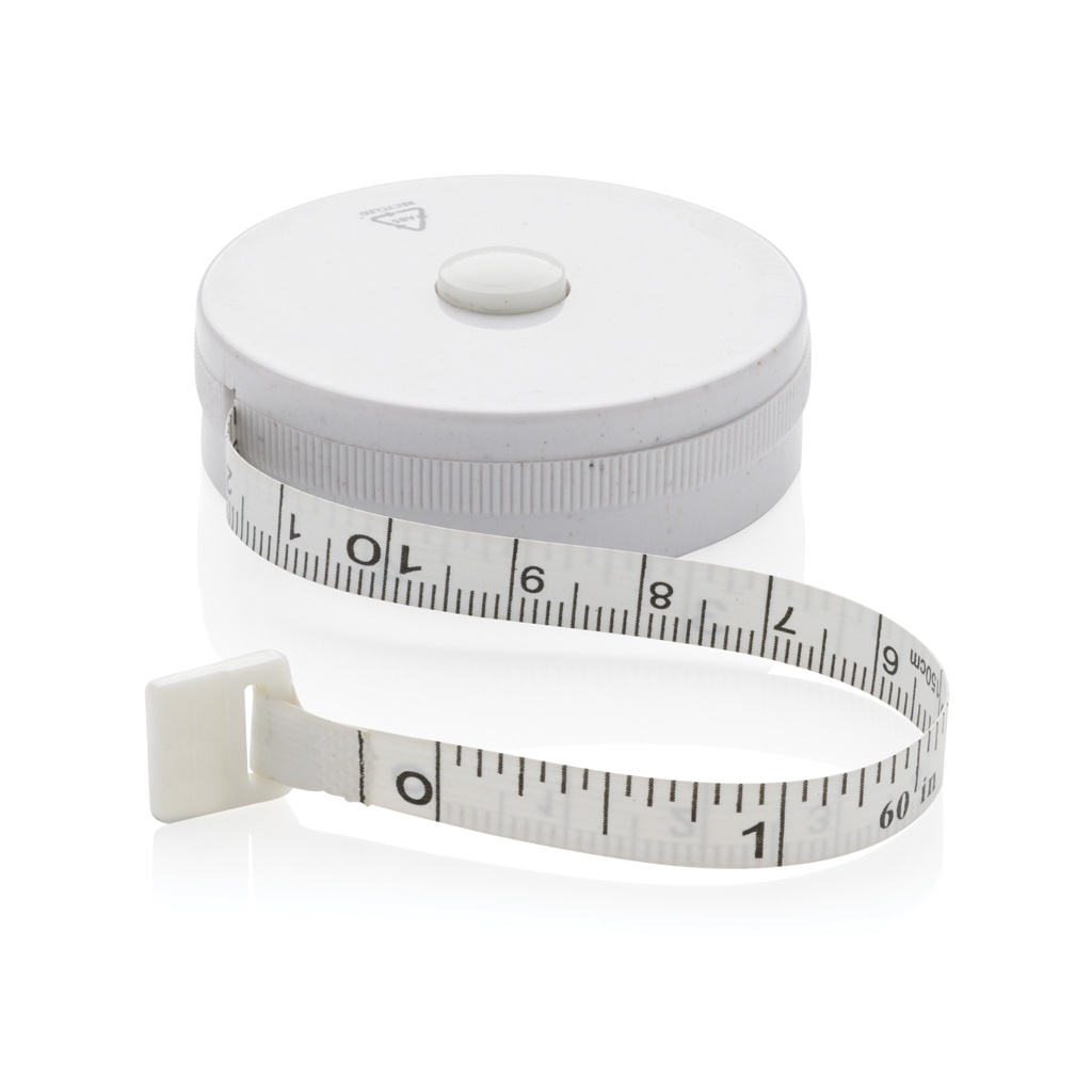 1,5 m/60-tolline taaskasutatud plastist lint koos tagasitõmbamisnupuga, treeningu ja moe jaoks. Korpus on valmistatud RCS-sertifikaadiga taaskasutatud ABS-plastist, klaaskiust ja FSC® 100% bambusest. Taaskasutatud kogusisaldus: 64% eseme kogukaalust. RCS-sertifikaat tagab taaskasutatud materjalide täielikult sertifitseeritud tarneahela. Lint on 8 mm lai ja nupuga sissetõmmatav. Pakitud FSC® segupakendisse.