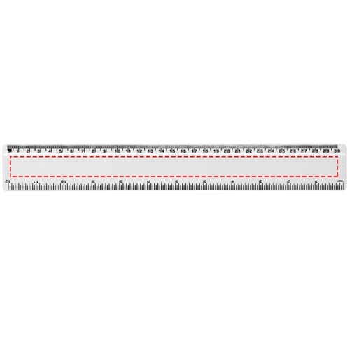 Tugev taaskasutatud plastist joonlaud, mille märgistused on saadaval nii tollides kui ka sentimeetrites.