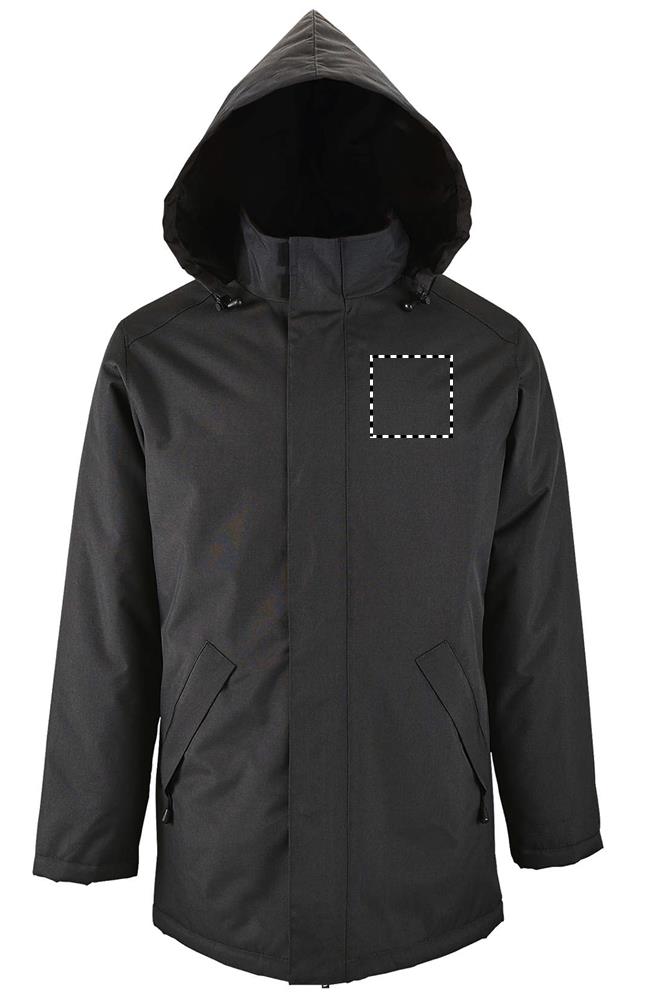 SOL'S ROBYN, polsterdatud voodriga unisex jope, 100% polüester – pvc kate, vooder <(>&<)> polster: 100% polüester oxford 300d, lukuga avamine kahekordse liuguriga ja isehaarduvate rihmade ja peidetud trukkidega plokk, kapuuts krae sees, krae sees fliisvoodriga, 2 klapiga välist lukuga taskut, 1 sisetasku, manseti kinnitused. Suuruste sobivuse kohta vaadake tootedokumentatsiooni jaotises olevat suurustabelit.