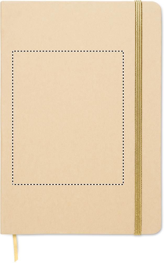 A5 märkmik kõva taaskasutatud pappkaanega. 160 joonega taaskasutatud paberilehte (80 lehte). Elastne sulgemisrihm, järjehoidja paelaga. Pärast lasergraveerimist selgub värv.