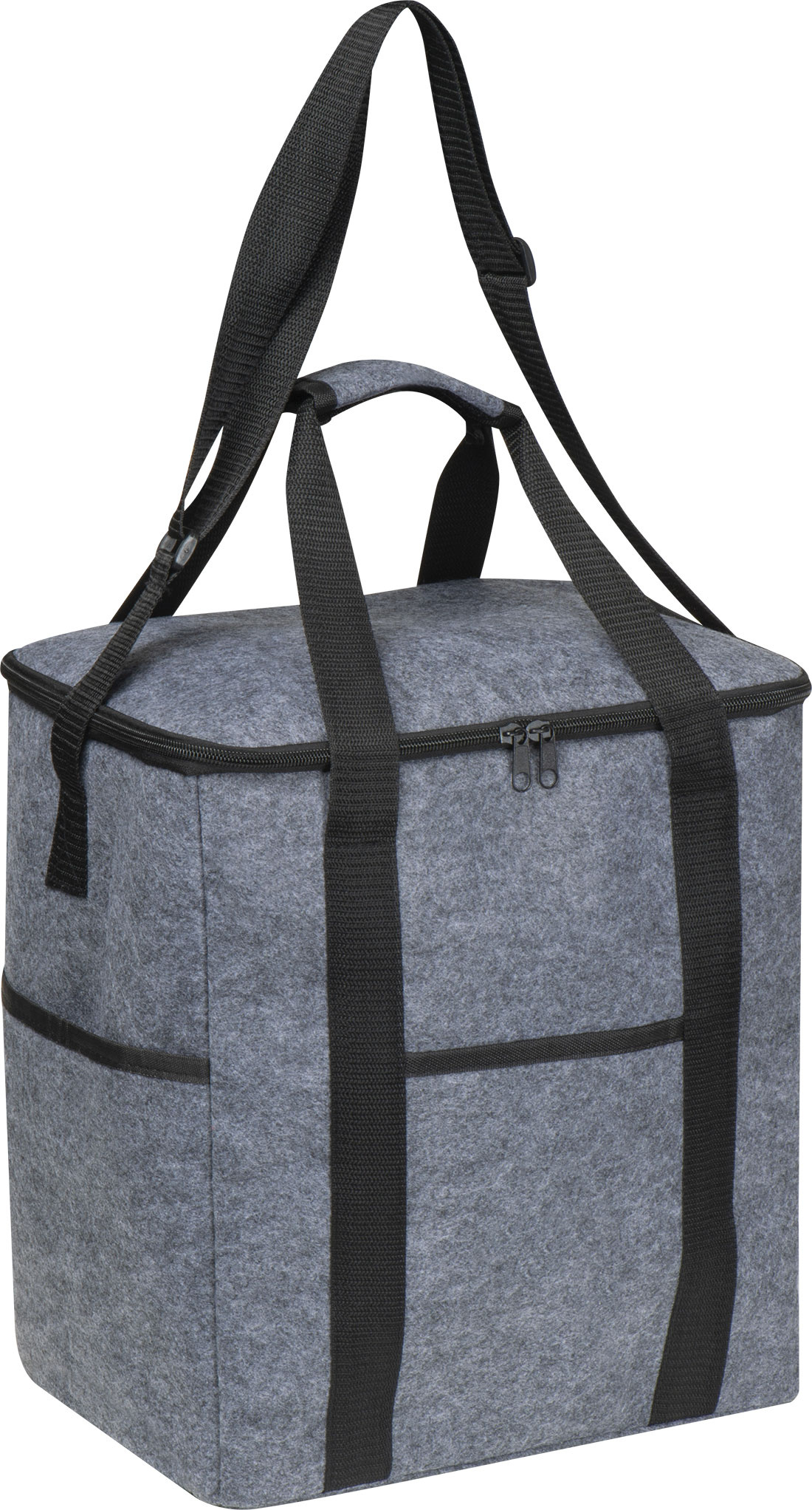 Taaskasutatud vildist ülisuur külmakott. Sellel on suur põhisahtel, kolm välist taskut, kaks kandesanga ja reguleeritav õlarihm.