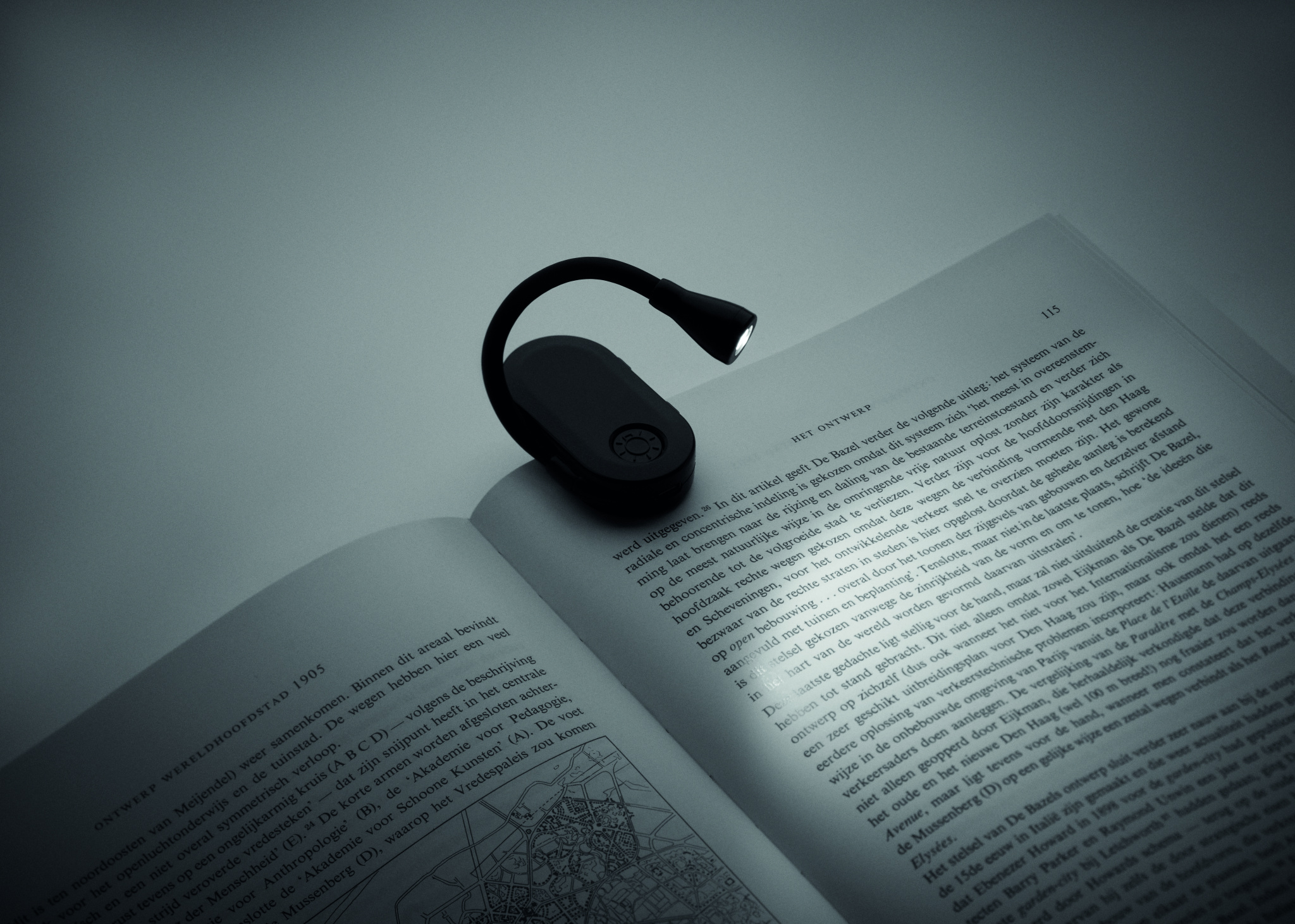 Laetav LED-raamatulamp ABS-plastist painduva korpuse ja klambriga. 3 valgusrežiimi, 300 mAh aku.