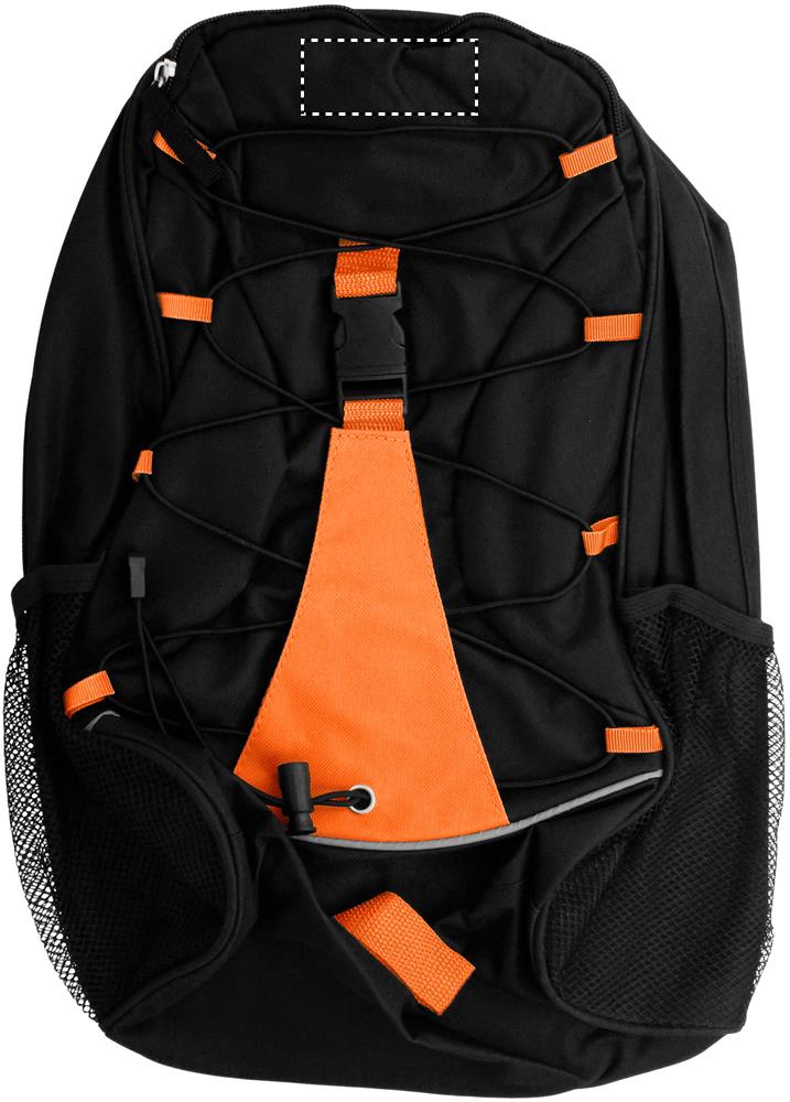 600D polüestrist seljakott värvilise kontrastse pealispinna ja kaunistusnööriga esipaneelil. Võrktaskud mõlemal küljel.