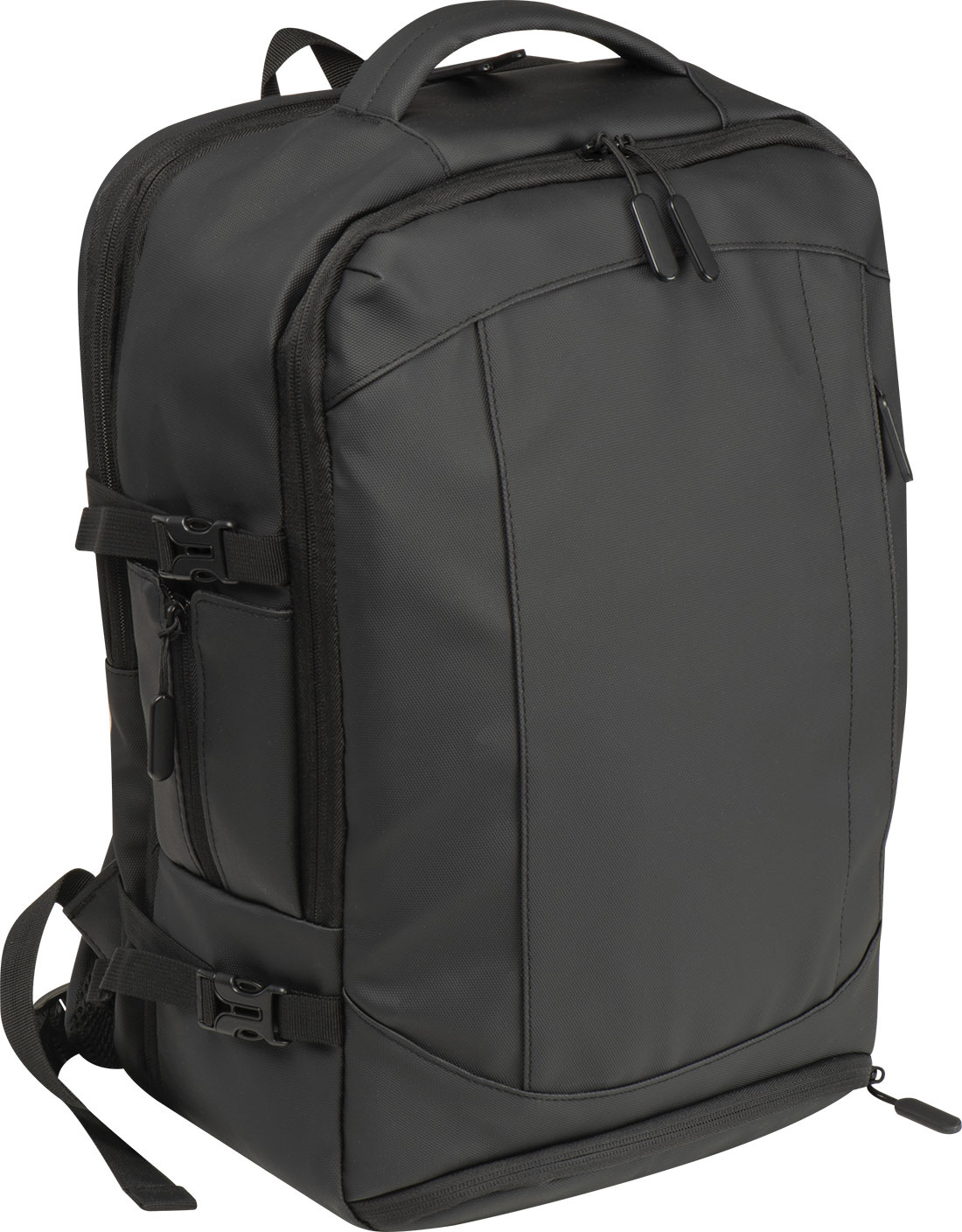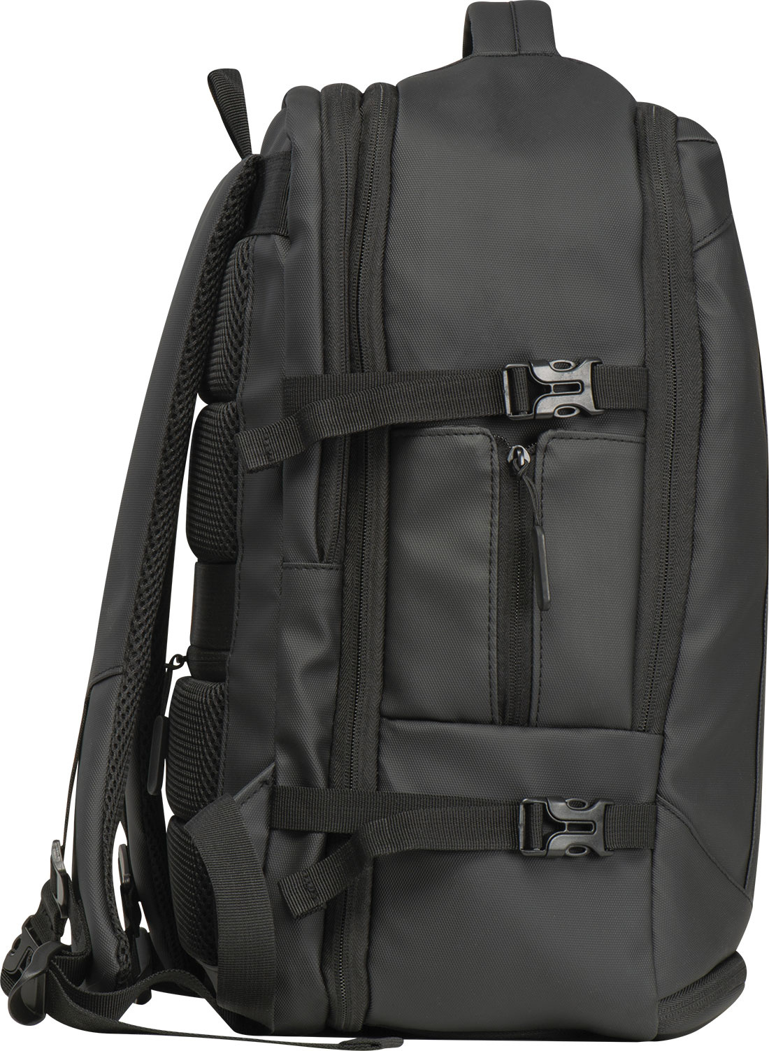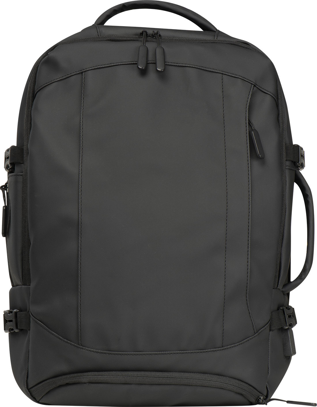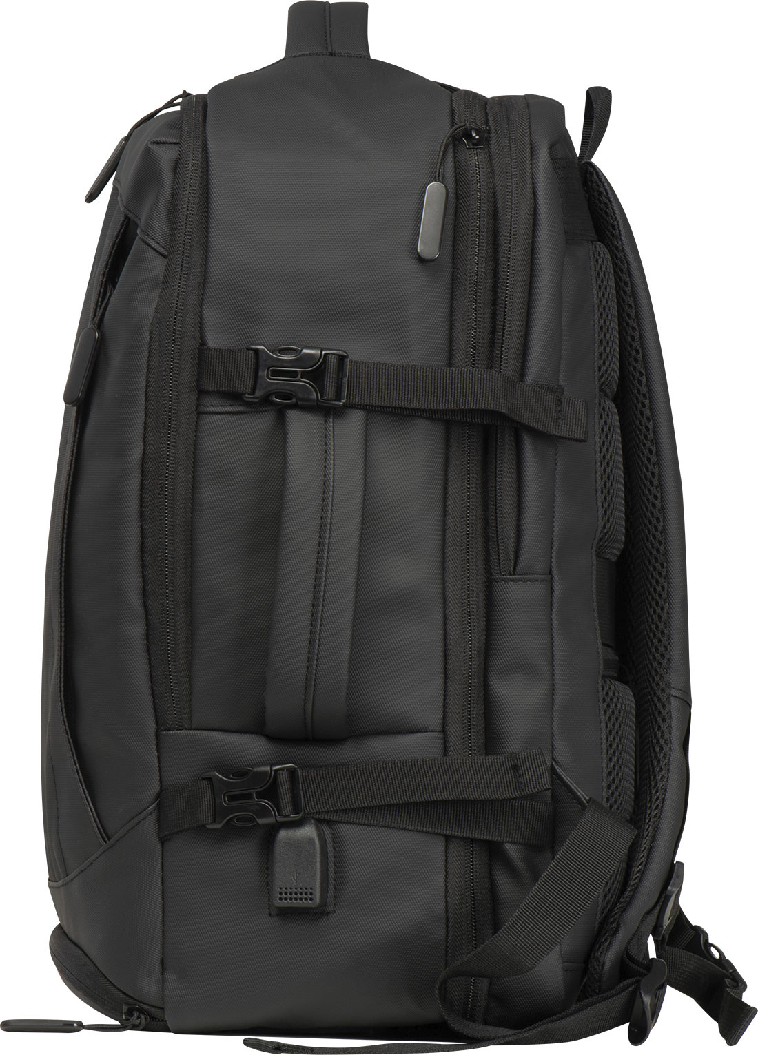 Kvaliteetne 300D polüestrist valmistatud seljakott. Sellel veekindlal seljakotil on mitu lahtrit: suletava ja täiendava taskuga sülearvuti sahtel, taga turvatasku, võrgusilma ja laiendatava tõmblukuga küljetasku, allosas mustuselahter, esikülje all polsterdatud tasku, esiküljel lukuga tasku, erinevad sisemised taskud. Lisaks sisaldab see USB-porti koos kaabliga, kahte kandesanga, käru rihma, polsterdatud õlarihmasid, polsterdatud seljaosa ja tõmblukku seljakoti laiendamiseks. Ideaalne kaaslane mitte ainult ärireisidel.