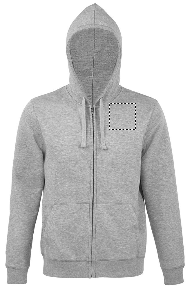 SOLI NARAMEHED. Meeste tõmblukuga kapuuts, 80% rõngaskedraga puuvill - 20% polüester Harjatud vooder, Väljast: 100% puuvill FLIIS 280 LSF (vähe kokkutõmbuv kangas), Sisseehitavad varrukad, 2 esikottitaskut, Lõige ja õmmeldud, Voodriga kapuuts tooniga -tooniga nöör, 2x2 sooniku mansetid ja alläär. Krae sees poolkuu, teibitud kael, YKK tõmblukk. ÖKO-TEX®. Müüakse ainult trükiga.