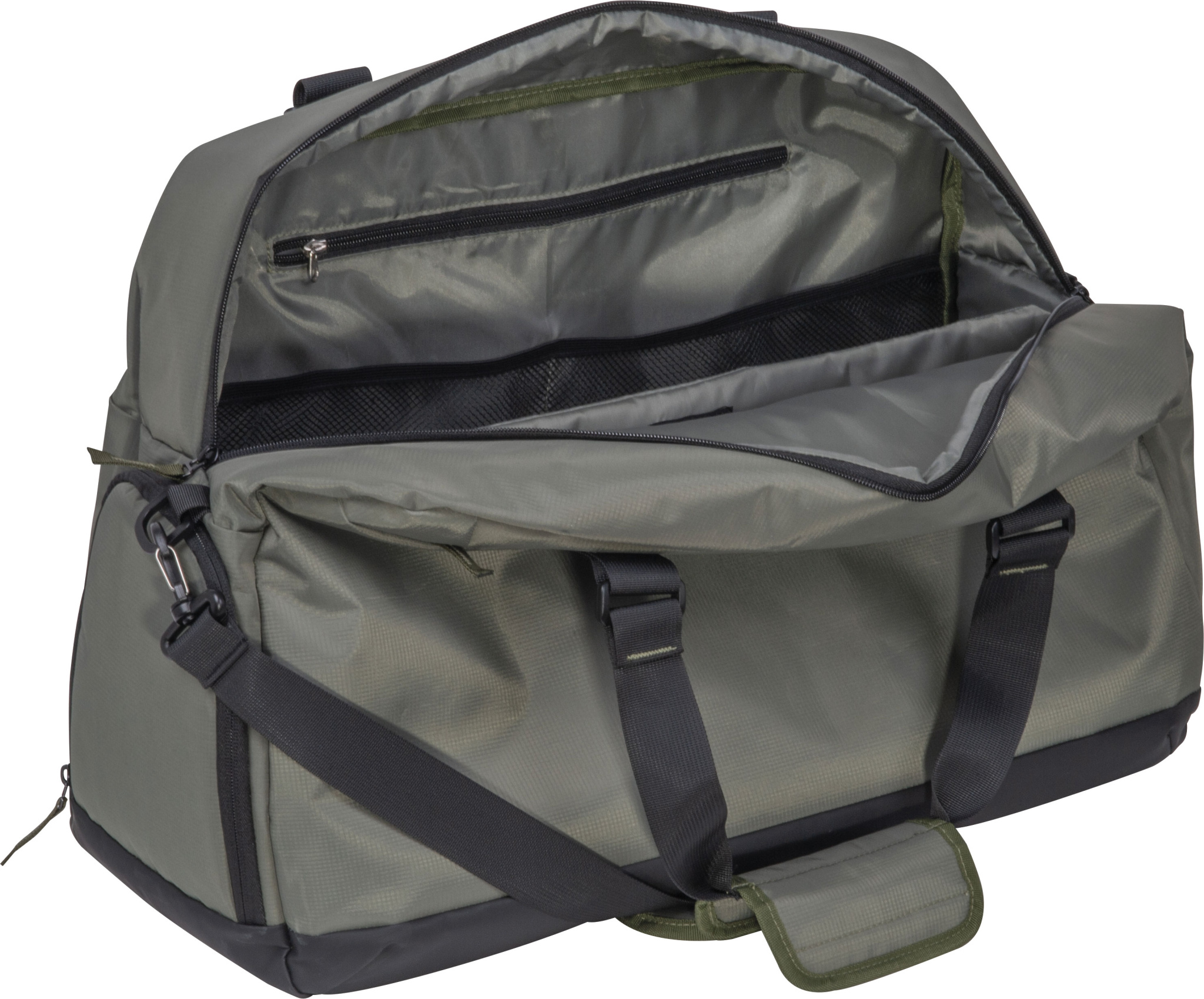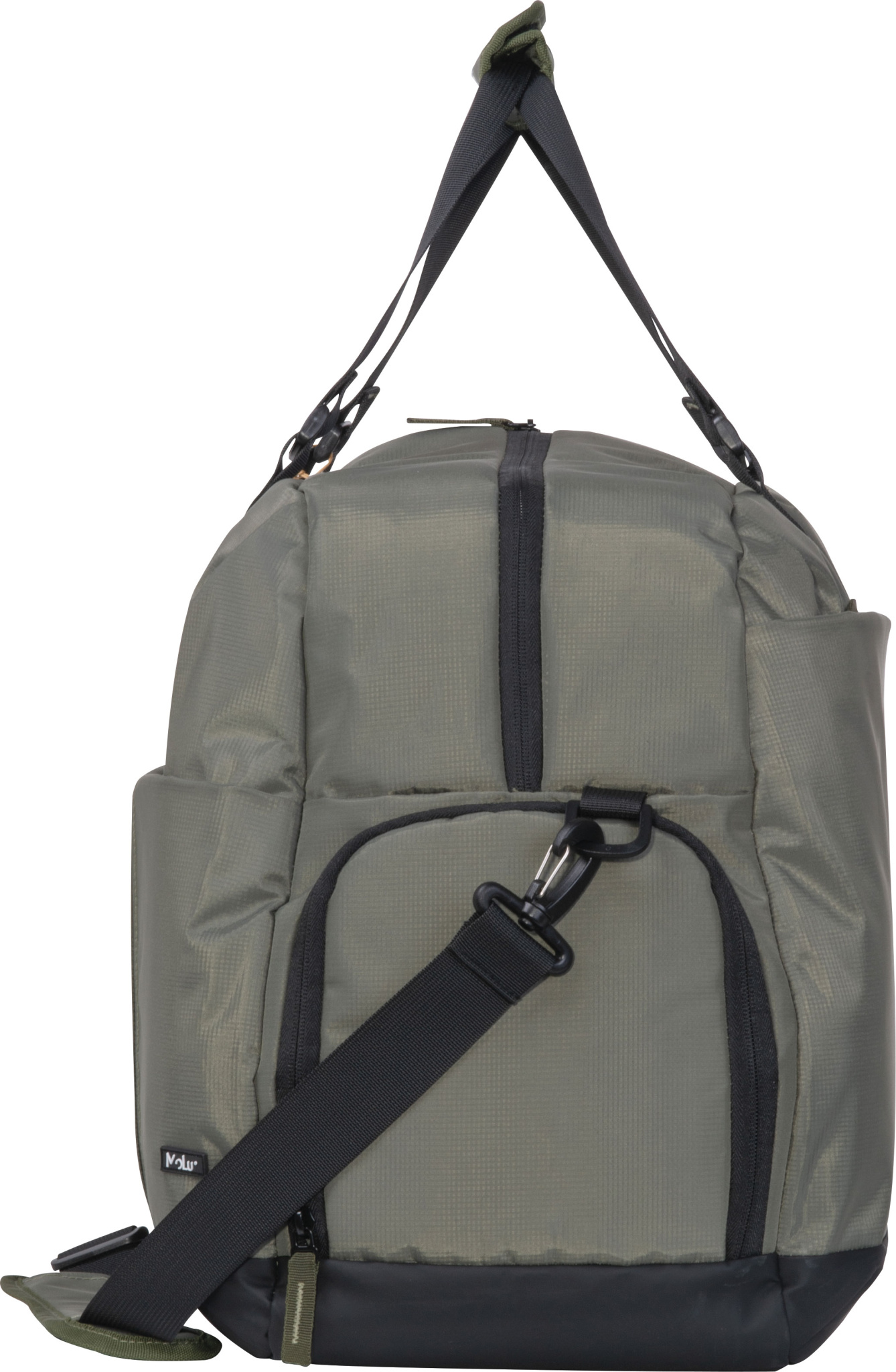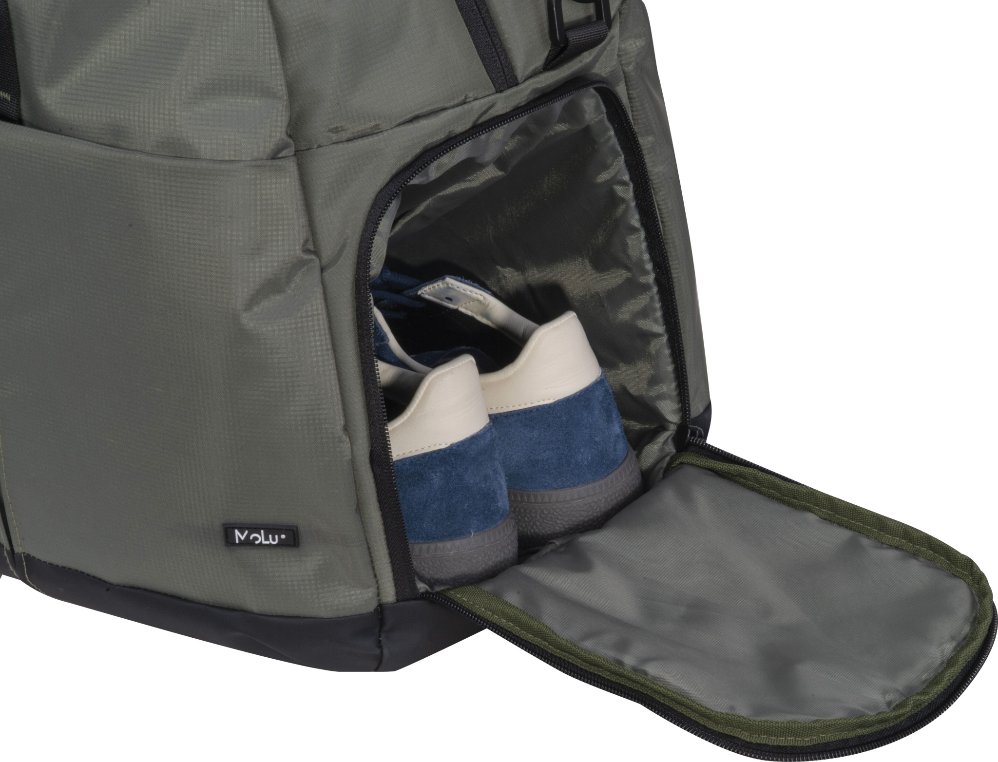 MoLu XXL spordi- ja reisikott – oliiviroheline. Sobib ideaalselt MoLu vöökotiga – sama välimus, sama standard. Valmistatud taaskasutatud PET-ist, vastupidav ja läbimõeldud disainiga.