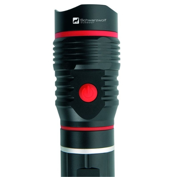 Metallist välistaskulamp Schwarzwolf. See sisaldab Cree XPE dioodi ja pikendavat COB dioodi, mis võimaldab väga intensiivset valgustust. Taskulambi otsas on magnet ja konks riputamiseks. Heledus: Cree XPE diood 130 luumenit, COB diood 180 luumenit. Kaasas 4 × AAA patareid.