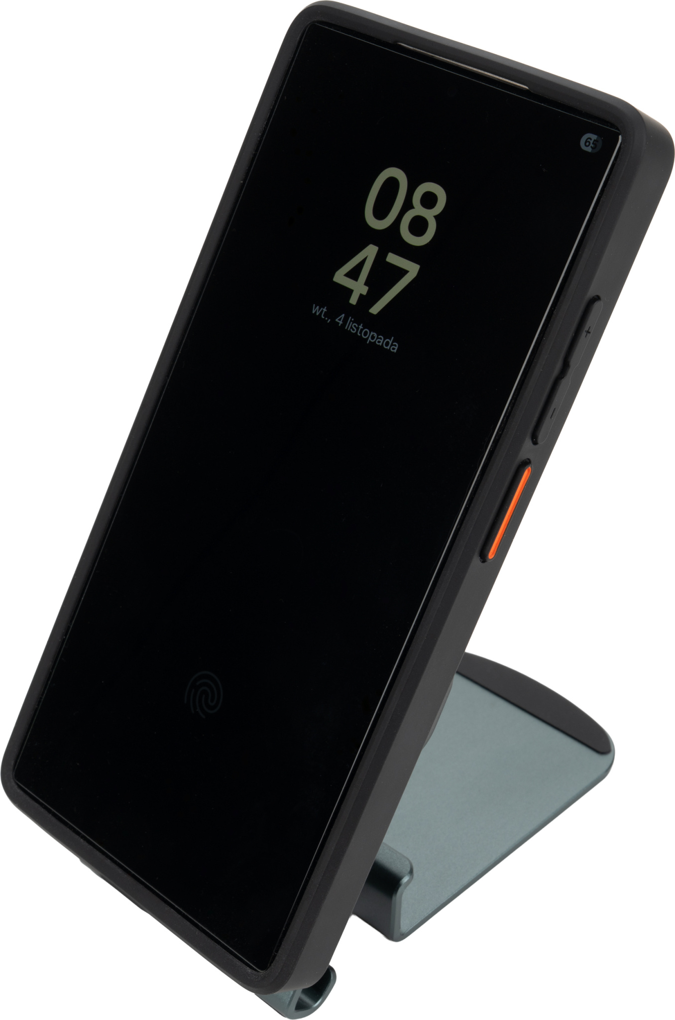 Universaalne juhtmevaba laadija, mis toimib ka praktilise telefonialusena. Seade ühildub Apple'i toodetega nagu iPhone, AirPods ja Apple Watch. See pakub laia valikut võimsusi (15W, 10W, 7,5W, 5W), kohandudes laetava seadme vajadustega, ja seda toidab kaasaegne Type-C liides (sisend: 5V/9V/12V – 2A max.). Konstruktsioon on valmistatud vastupidavast alumiiniumsulamist, PC-st ja ABS-ist, mis tagab vastupidavuse ja elegantse välimuse. Komplekt sisaldab laadijat, ühemeetrist Type-C kiirlaadimiskaablit ja neutraalset kinkekarpi mõõtmetega 7,2 × 2,2 × 17 cm.