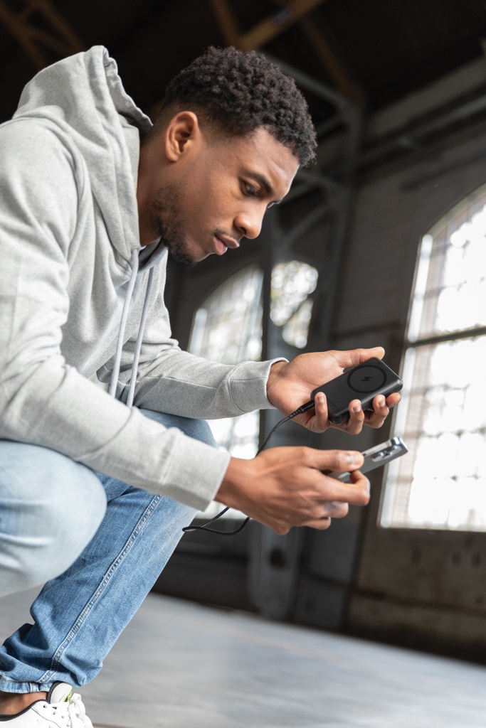 Laadige oma telefoni selle kiirlaadimise akupangaga kuni 2,5 korda. Õhukesel ja kompaktsel akupangal on integreeritud kiire 10 W juhtmevaba magnetlaadija. Sellel on mitmekülgne sisseehitatud kokkupandav tugijalg, mis hoiab teie telefoni mugava vaatenurga jaoks püsti. Tänu ülikiirele C-tüüpi PD-pordile laeb akupank rekordajaga uuesti. Telefoni kuni 50% laadimine võtab aega vaid 30 minutit. Aeglane laadimine on midagi minevikust. Akupank sisaldab kauakestvat A-klassi 10 000 mAh akut, et laadida kõiki oma seadmeid reisidel ja seiklustel. Topeltväljundiga A ja C-tüüpi port võimaldavad laadida kuni 2 seadet korraga. Valmistatud RCS-i (Recycled Claim Standard) sertifitseeritud ringlussevõetud ABS-ist Kogu taaskasutatud sisaldus: 16% eseme kogukaalust. RCS-sertifikaat tagab taaskasutatud materjalide täielikult sertifitseeritud tarneahela. Urban Vitamin tooted on valmistatud ilma PVC-ta ja pakendatud vähendatud plastikpakendisse. USB: 5 V 3,0 A Tüüp C: 5 V 3,0 A, 9 V 2,22 A, 12 V 1,5 A.
