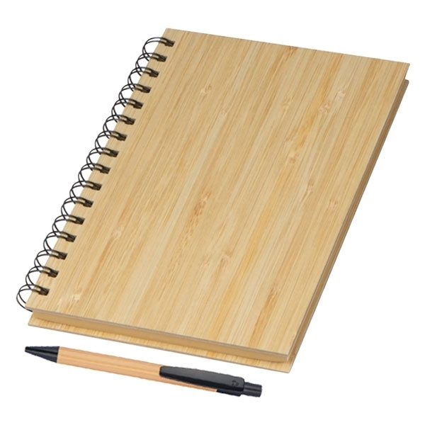 Tyylikäs ekologinen setti, joka koostuu DIN A5 -muistikirjasta, jossa on bambukansi, spiraalisidonta ja 160 kierrätyspaperista valmistettua vuorattua sivua sekä bambukuulakynä, jossa on sininen muovitäyttö ja muoviset sovellukset. Kaivertamme logosi muistikirjan kannen ulkopuolelle.
