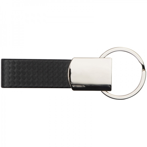 Tyylikäs metallinen avaimenperä hiilikuituisella hihnalla. Logosi kaiverretaan kromatulle pinnalle.