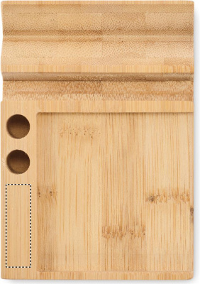Bambuinen pöytäkalenteri puhelintelinetoiminnolla, 2 kynätelinettä ja 50 tarrapaperia.