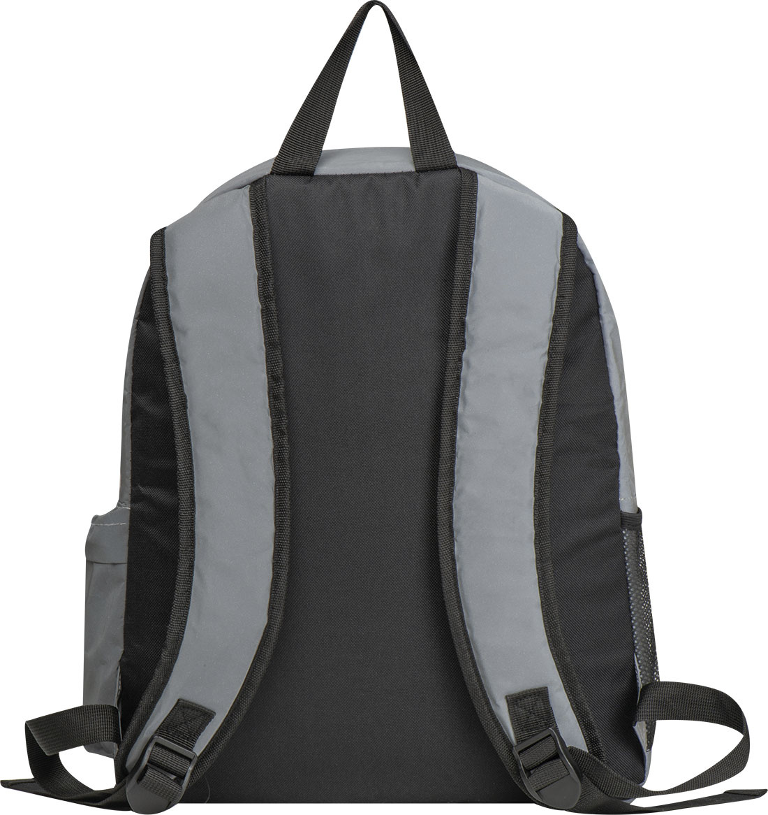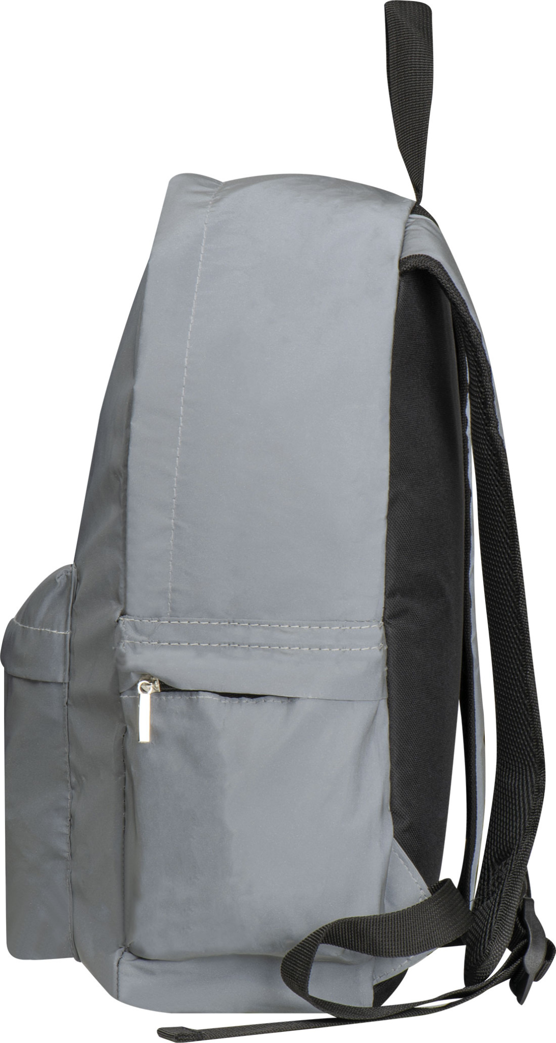 Näkyvyyden lisäämiseksi! Erittäin heijastava reppu 190T ja 600D polyesterista. Siinä on lokero kannettavalle tietokoneelle, verkkotasku sivussa, vetoketjullinen sivutasku, pehmustetut säädettävät olkaimet ja vetoketjullinen etutasku.