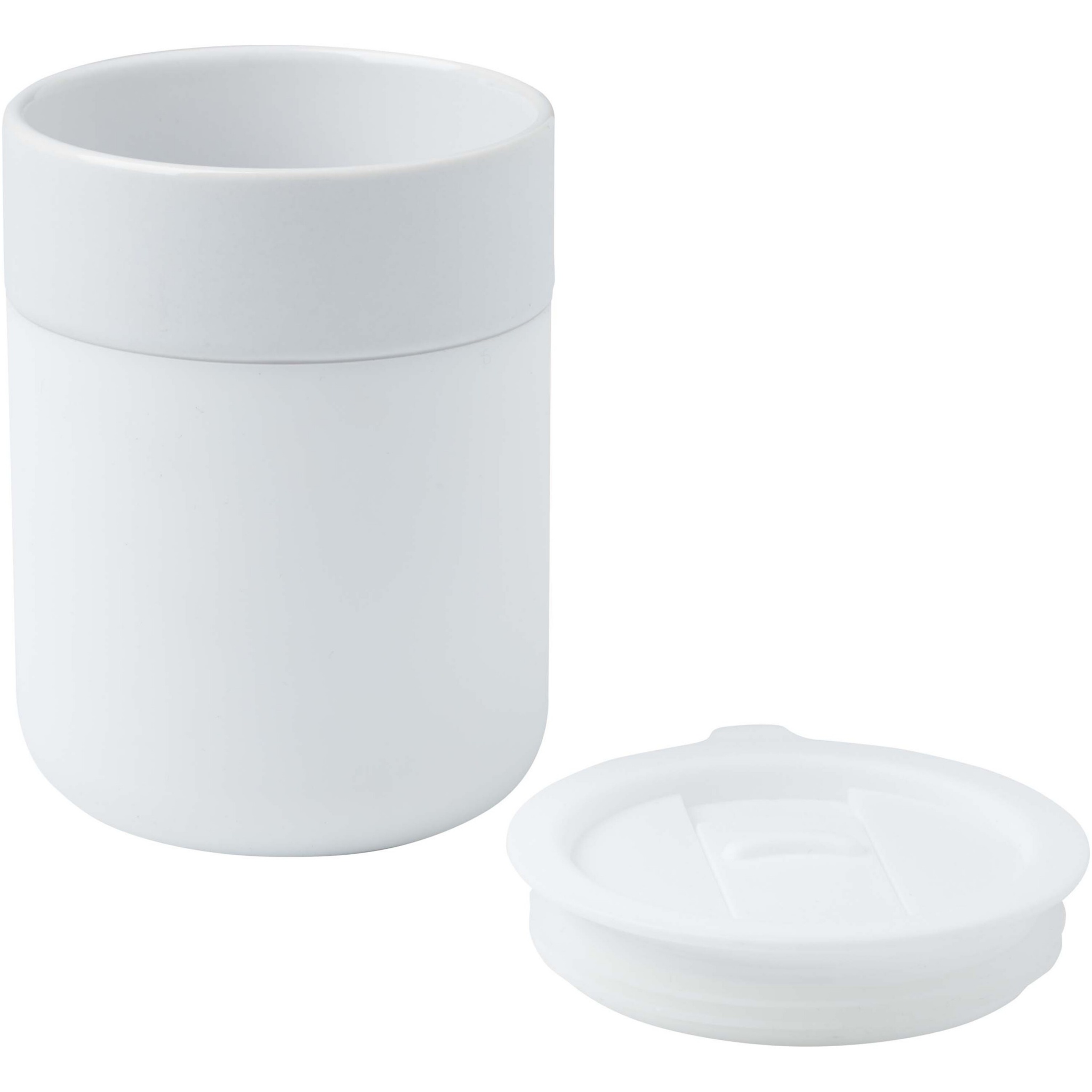 Yksiseinäisessä keraamisessa Java kupissa on arkikäyttöön sopiva yksinkertainen ja käytännöllinen muotoilu, ja rungon päällä oleva silikonireunus takaa miellyttävän otteen. Roiskumaton kansi. Tilavuus: 330 ml.