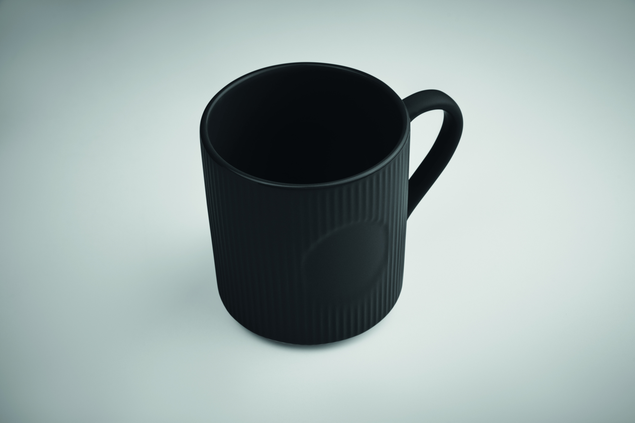 Pintakuvioitu keraaminen muki matta värillä. Tilavuus: 340 ml.