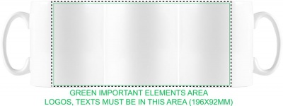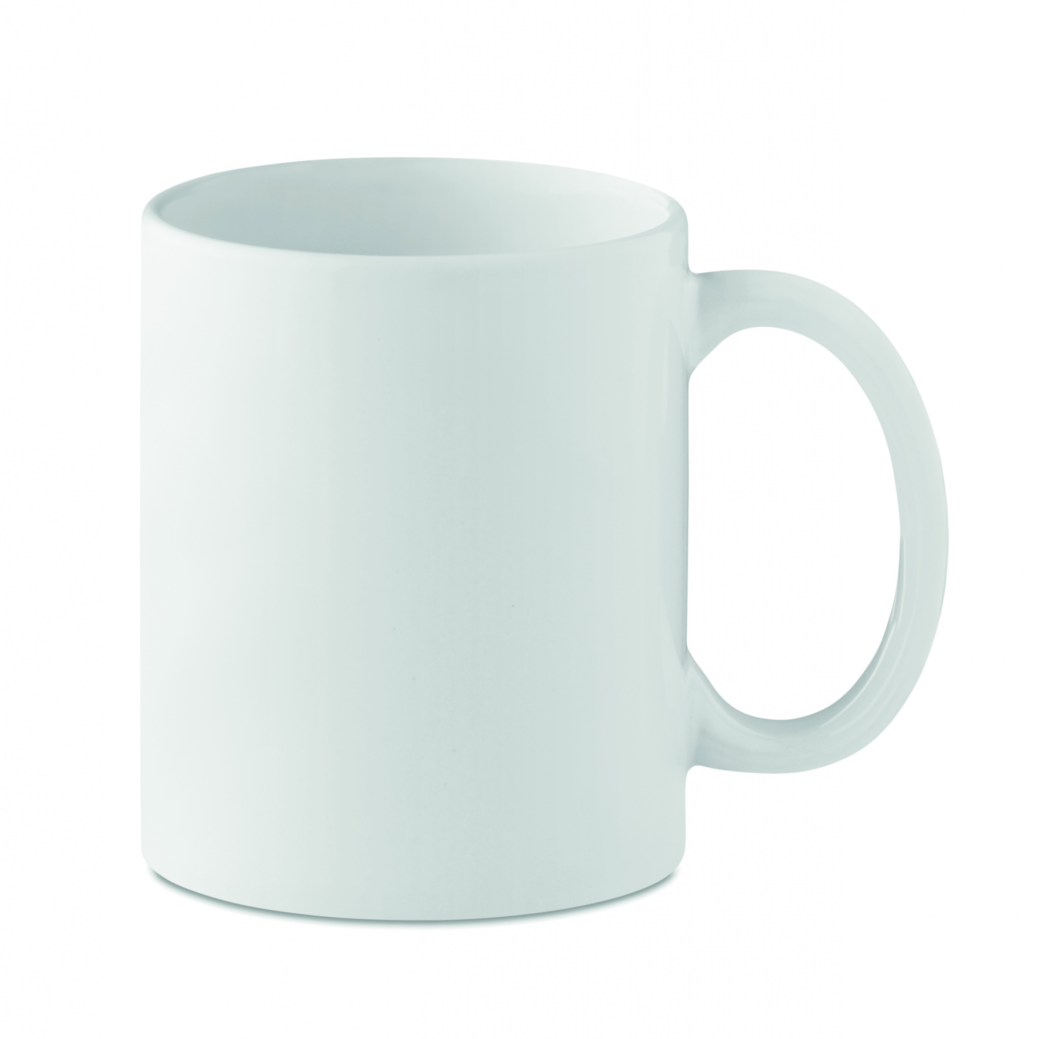 Keraaminen muki 300 ml, erikoispinnoite sublimaatiota varten. Yksittäispakattuna valkoiseen pahvilaatikkoon.