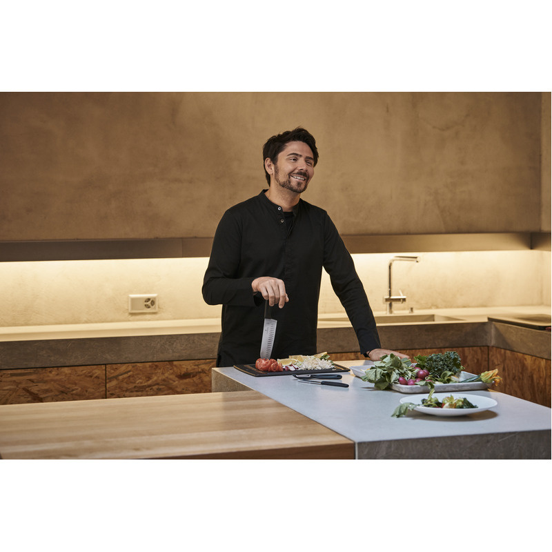 Leikkaaminen, veistäminen, kuutioiminen, valmistelu, sorvaus: monipuoliset Victorinox-kasvisveitset sopivat kaikenlaiseen vihannesten valmistukseen. Laaja valikoima terien muotoja ja kokoja, sekä sahalaitaisia että sahalaitaisia, takaavat täydelliset veitset kaikille vihanneksille. 3-osainen leikkausveitsi: 1.Katkaisuveitsi 6,7603 -terä: 8cm -kahvan väri: musta -pituus: 19cm 2.Tomaattiveitsi 6,7833 -terä: 11cm -kahvan väri: musta -pituus: 22cm 3.Katkaisuveitsi 3cm -6terä7:433cm. -kahvan väri: musta -pituus: 19cm