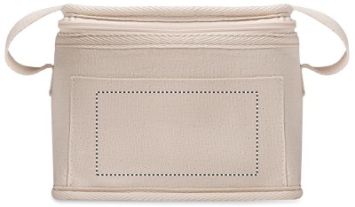 Puuvillainen 280 gr/m² kylmälaukku, jossa on etutasku. 3 mm eristävä alumiinilaminoitu folio. Tilavuus 3 L.