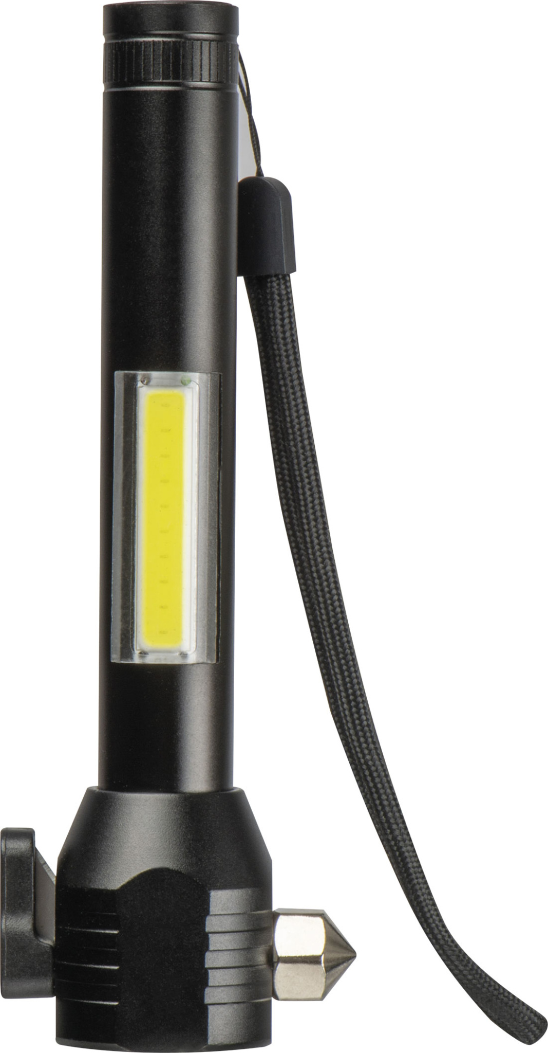 Monitoiminen, ladattava COB-taskulamppu alumiinista. Taskulamppu sisältää 500 mAh:n akun, USB-C-latauskaapelin, turvavasaran, turvavyöleikkurin, rannehihnan ja magneetin kiinnitystä varten.