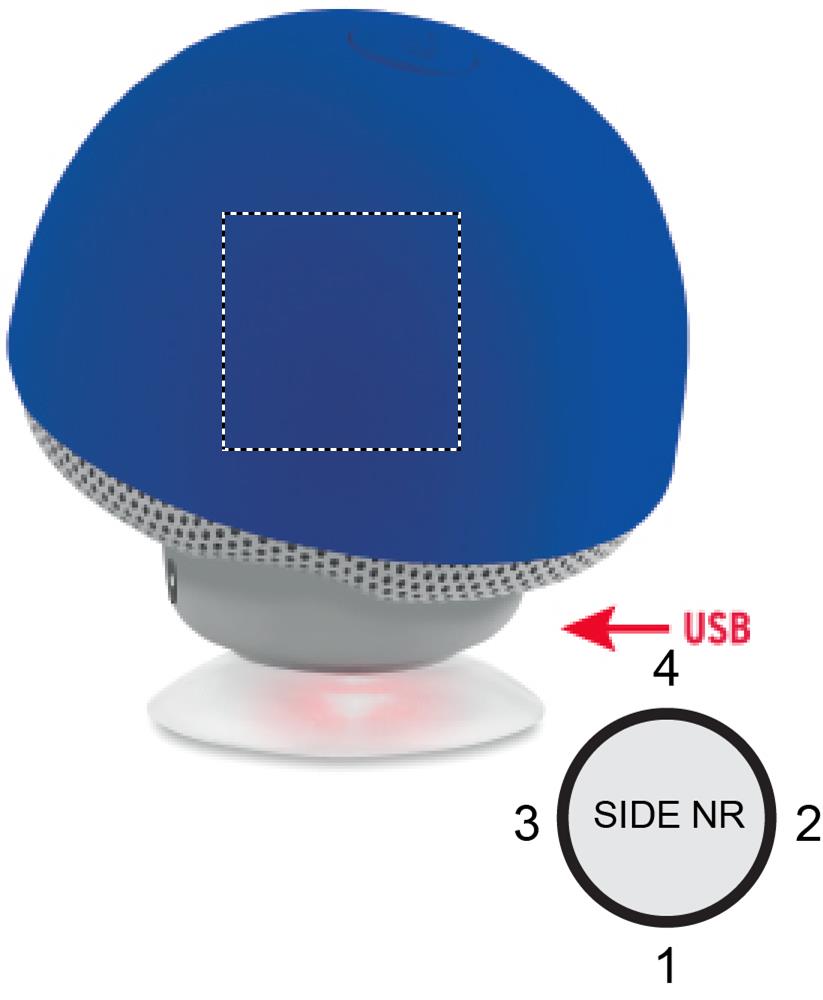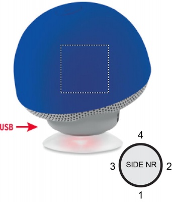 Sienen muotoinen ABS 5.0 langaton kaiutin/ puhelinalusta imukupilla, lähtövirta 4 Ohm, 5V ja 3W. Sisältää ladattavan 180 mAh litium akun ja USB latauskaapelin. Arvioitu toistoaika 2 tuntia.